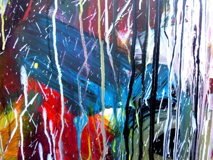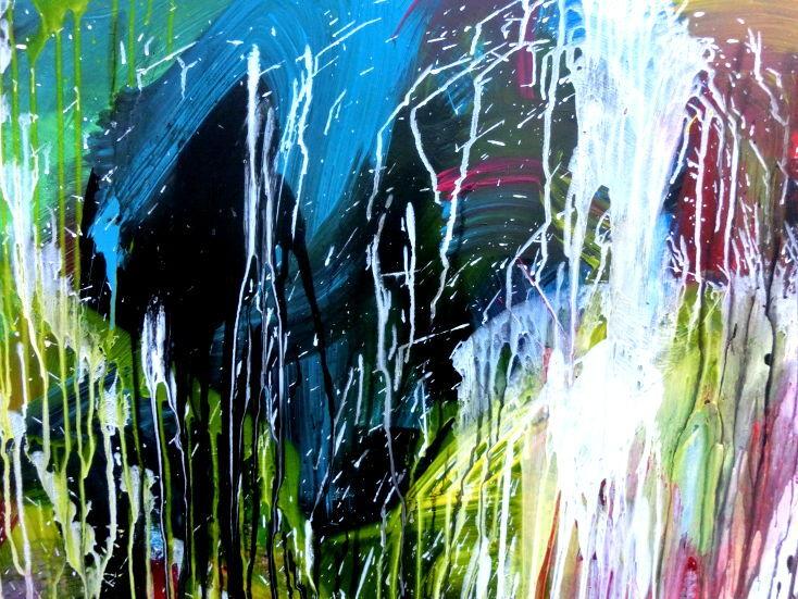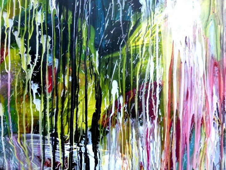 Dieses Werk ist wie alle meine Bilder: spontan entstanden, ganz intuitiv und ohne festes Konzept, und spiegelt oft meine momentane Stimmung wider wie auf der Leinwand festgehalten wurde.