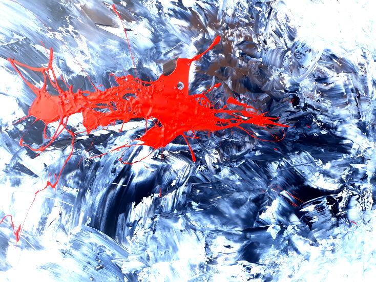 Hallo, ich bin Alex Zerr, der Künstler hinter diesem Gemälde. In meinem Atelier in Bad Lippspringe erschaffe ich abstrakte Acrylbilder, überwiegend im Action-Painting-Stil. Meißtens mit Acrylfarben und auf sehr großen XXL-Leinwänden, die meinem kreativen Prozess besonders viel Freiheit erlauben und oft zu beeindruckenden Gemälden führen.