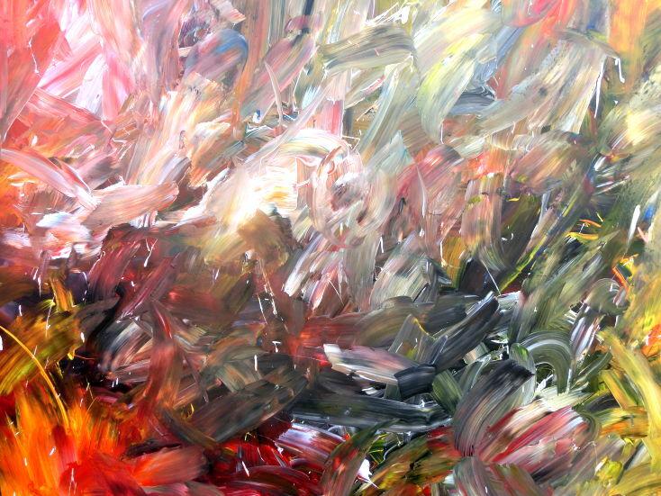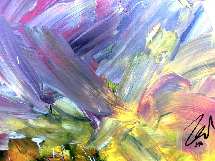 Dieses Werk ist wie alle meine Bilder: spontan entstanden, ganz intuitiv und ohne festes Konzept, und spiegelt oft meine momentane Stimmung wider wie auf der Leinwand festgehalten wurde.