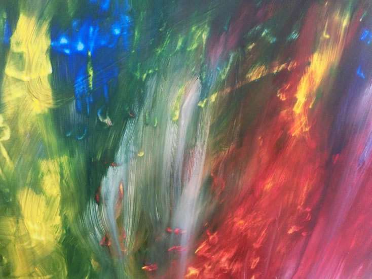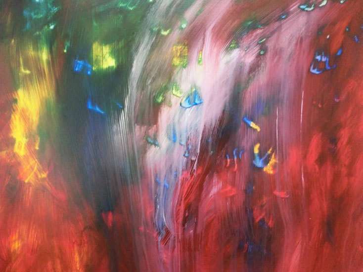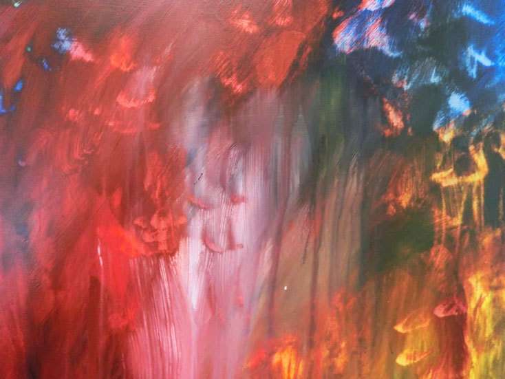 Dieses Werk ist wie alle meine Bilder: spontan entstanden, ganz intuitiv und ohne festes Konzept, und spiegelt oft meine momentane Stimmung wider wie auf der Leinwand festgehalten wurde.