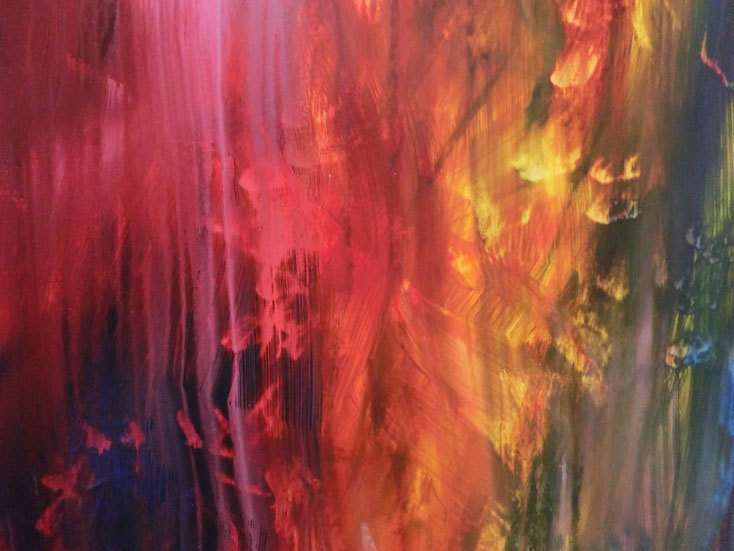 Dieses abstrakte Acrylbild ist ein handgemaltes Original vom Künstler Alex Zerr aus Bad Lisppringe und ist im Jahr 2015 in seinem Atelier entstanden. Das Bild hat eine Größe von 150x200cm und ist bereits auf einem hochwertigen und stabilem Rahmen aufgespannt. Dadurch kann das Bild nach der Lieferung direkt an die Wand gehängt werden und sofort in Ihrem Raum wirken. Alle Seiten des Gemäldes sind passend zum Motiv bemalt, so dass kein zusätzlicher Rahmen benötigt wird.