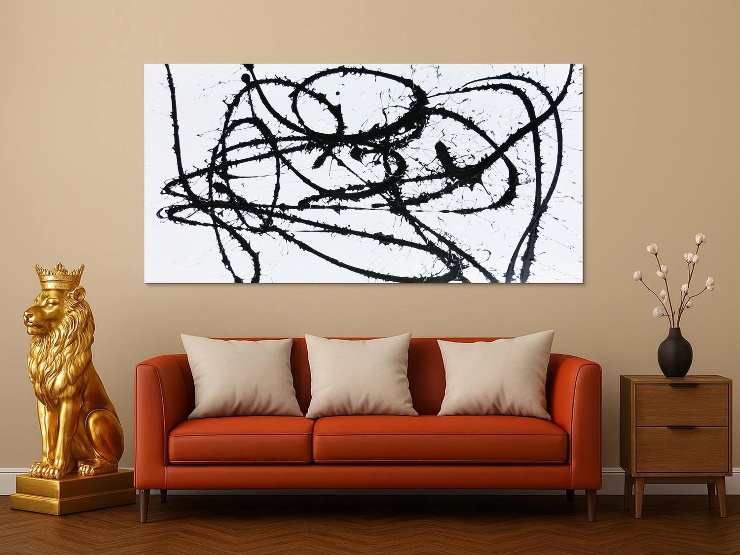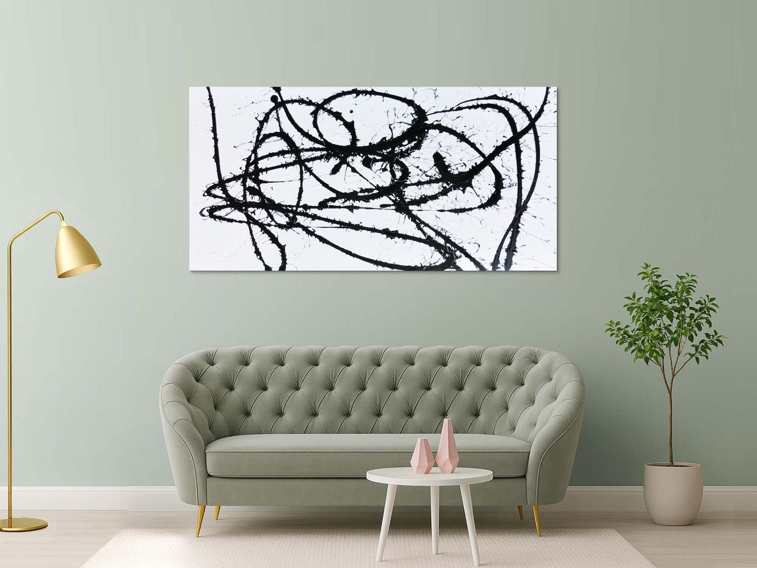 Abstraktes Actylbild minimalistisch schwarz weiß modern