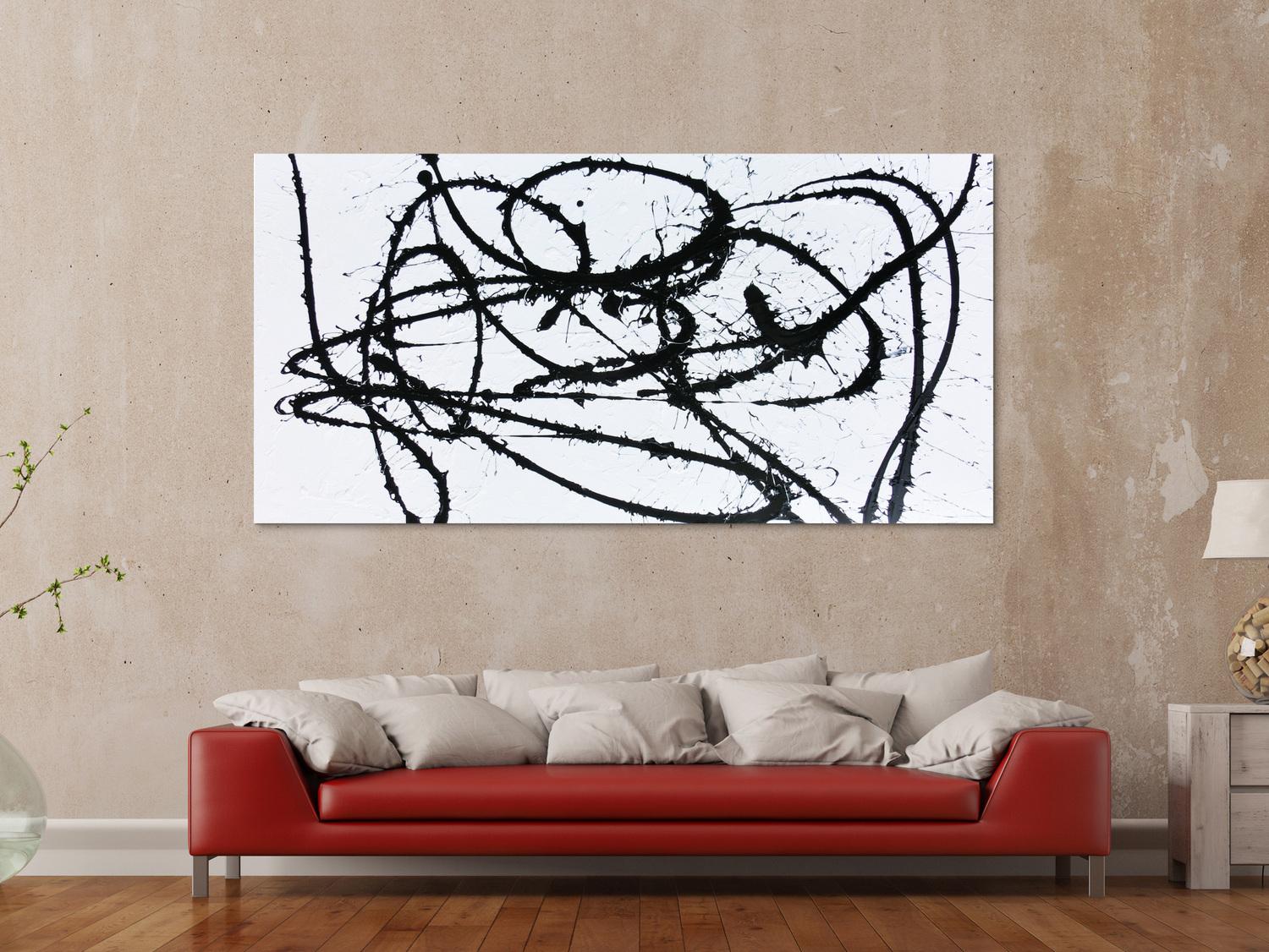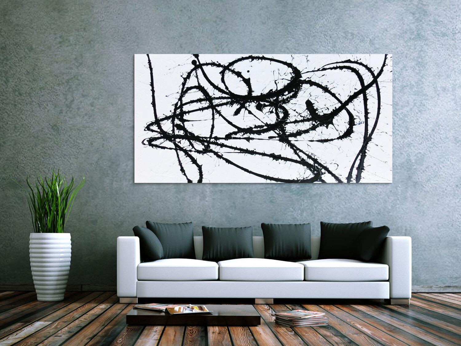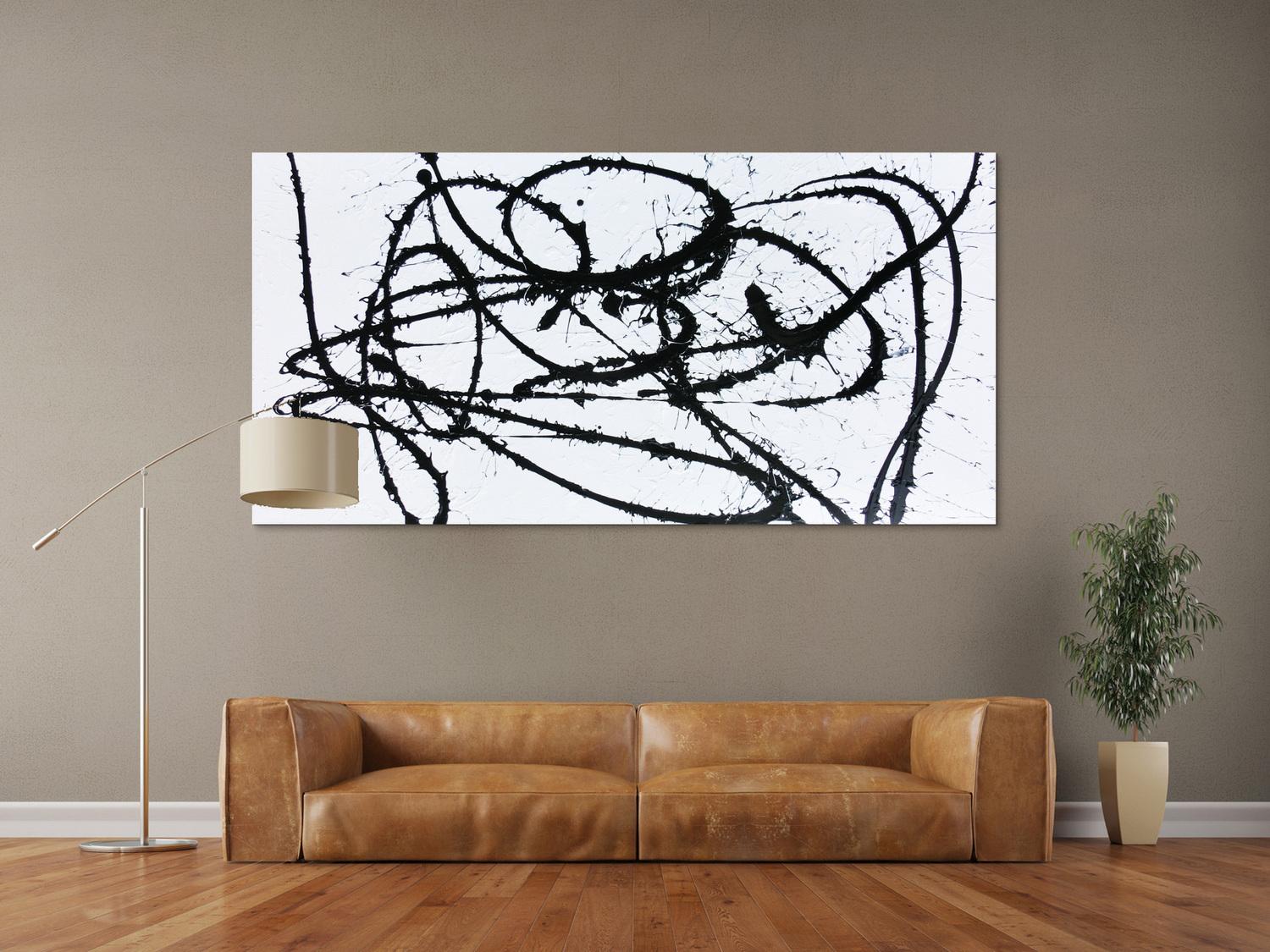 Abstraktes Gemälde auf Leinwand Abstraktes Actylbild minimalistisch schwarz weiß modern in 100x200cm von Alex Zerr