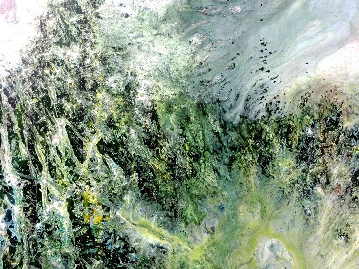 Abstraktes Bild Acrylgemälde Fließtechnik im Hochformat