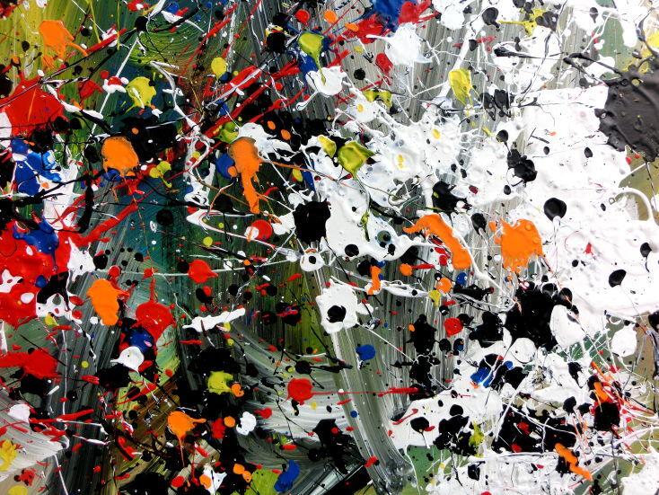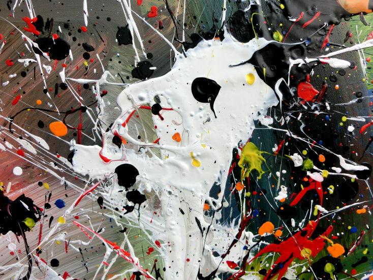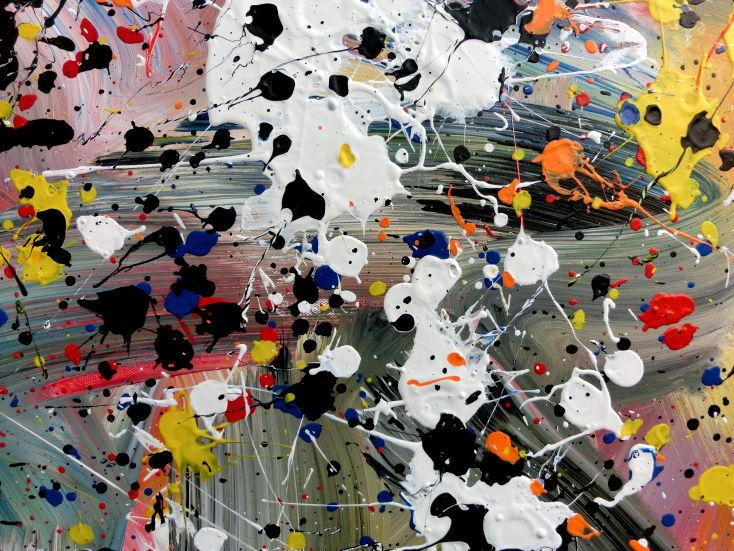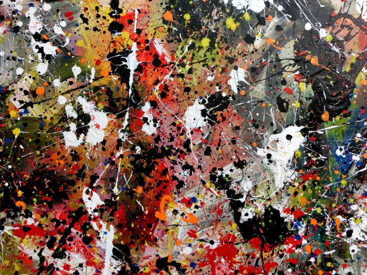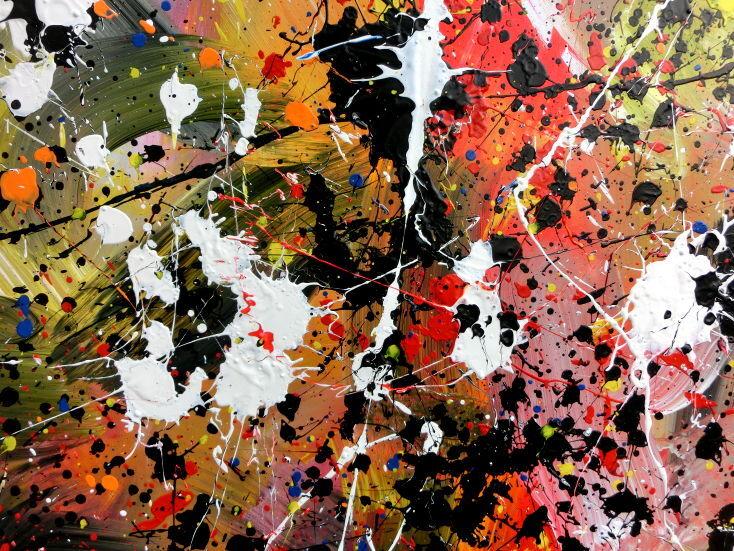 Abstraktes Bild Actionpainting Acryl expressionistisch sehr modern und bunt viele farben