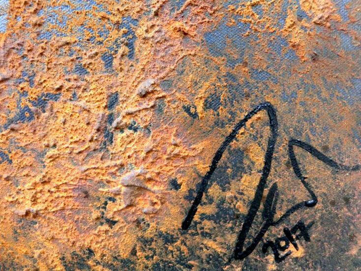 Abstraktes Bild aus echtem Rost und Acryl sehr mordernes Gemälde Rost auf schwarzem Hintergrund