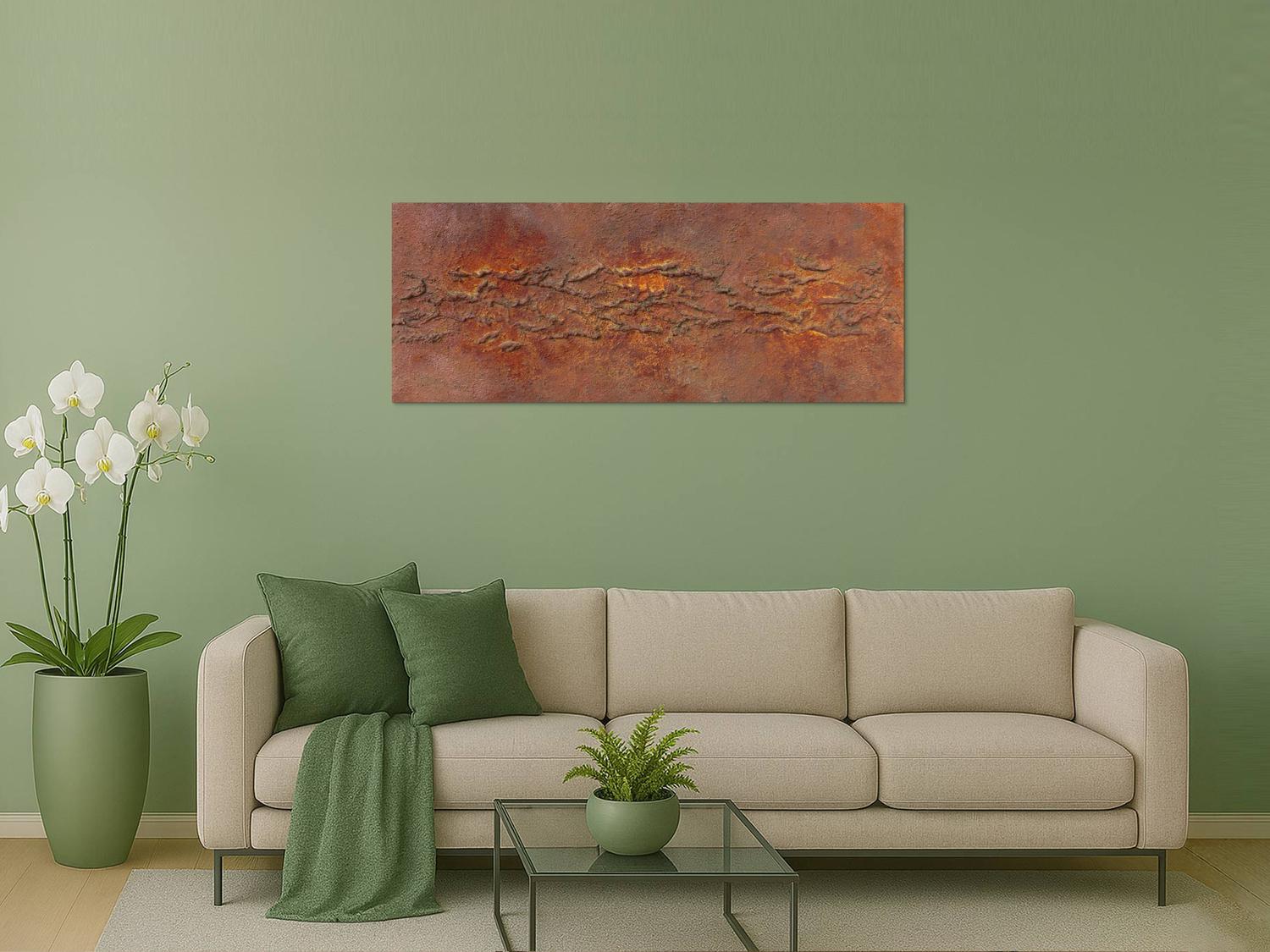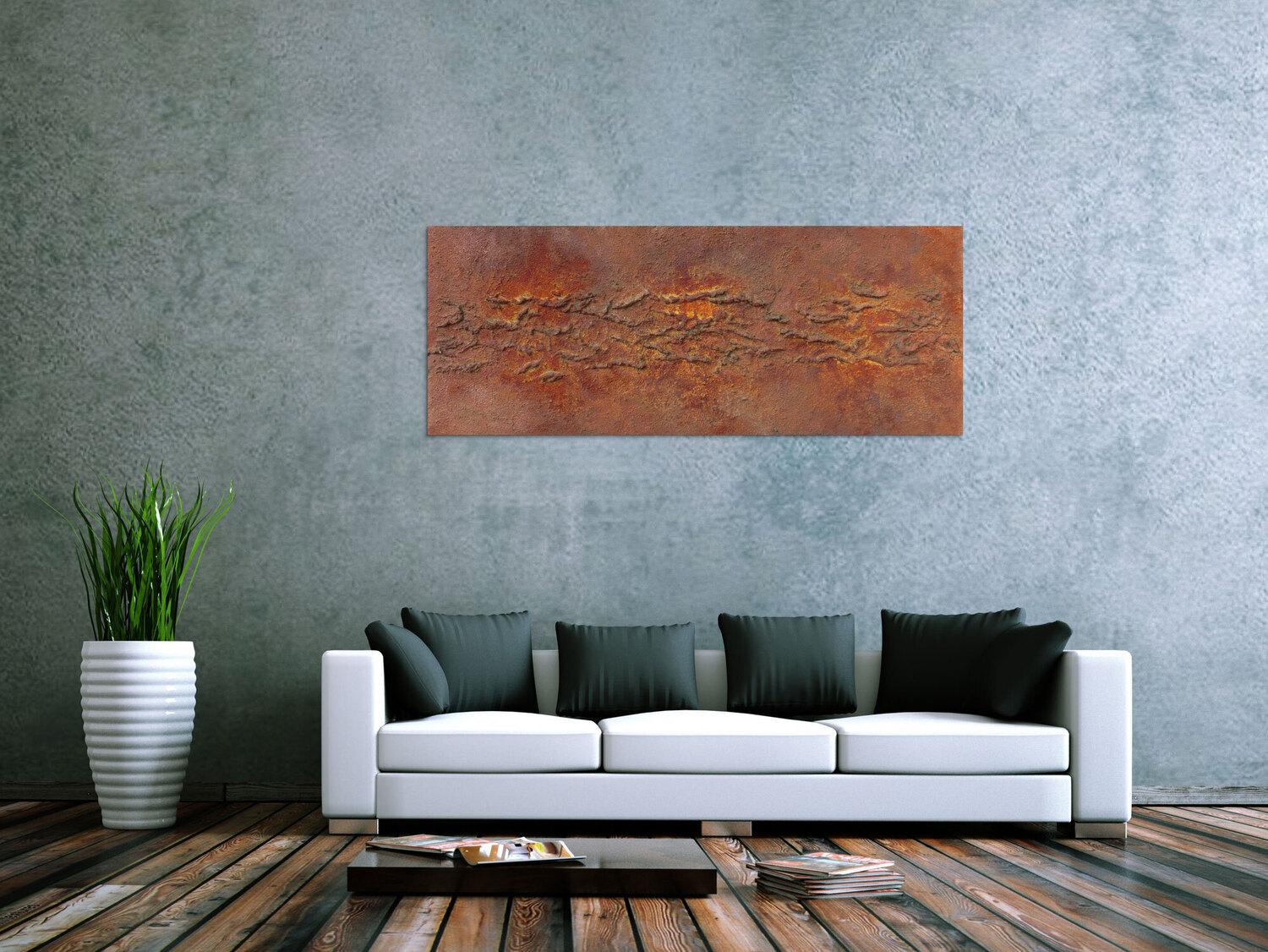 Abstraktes Gemälde auf Leinwand Abstraktes Bild aus echtem Rost und starker Strukur in 60x150cm von Alex Zerr