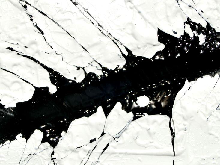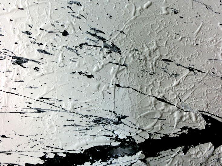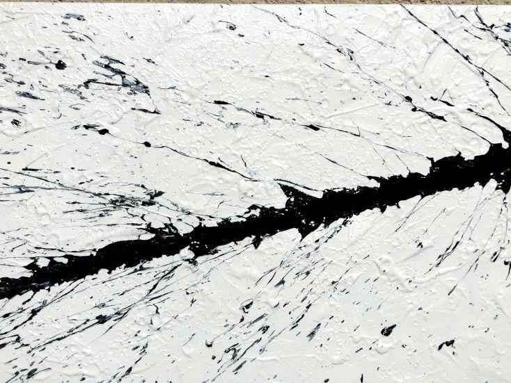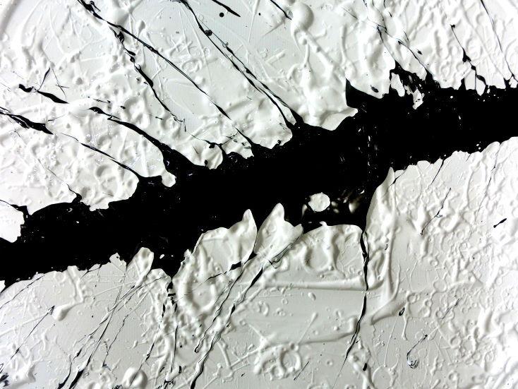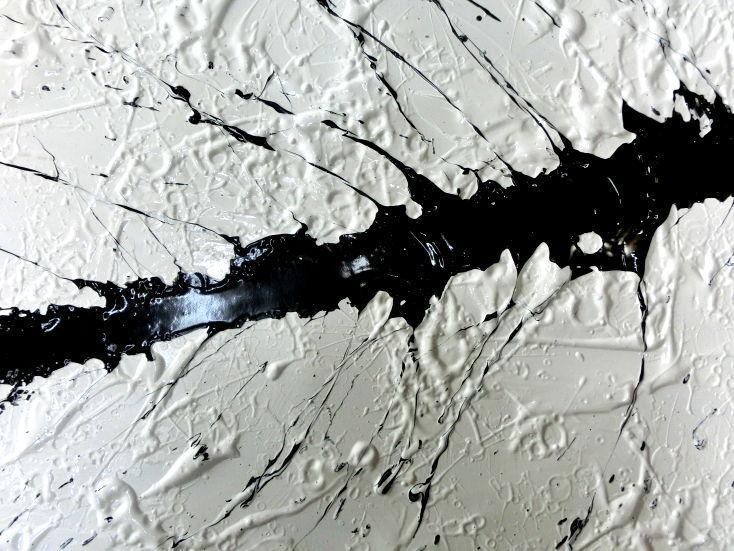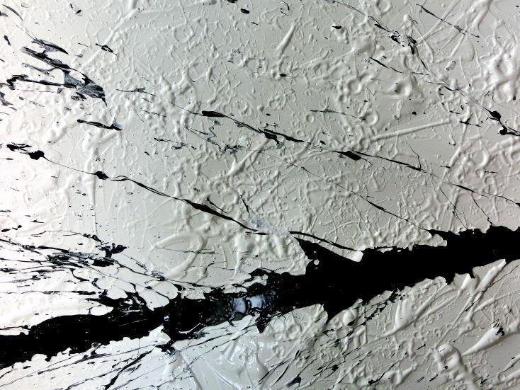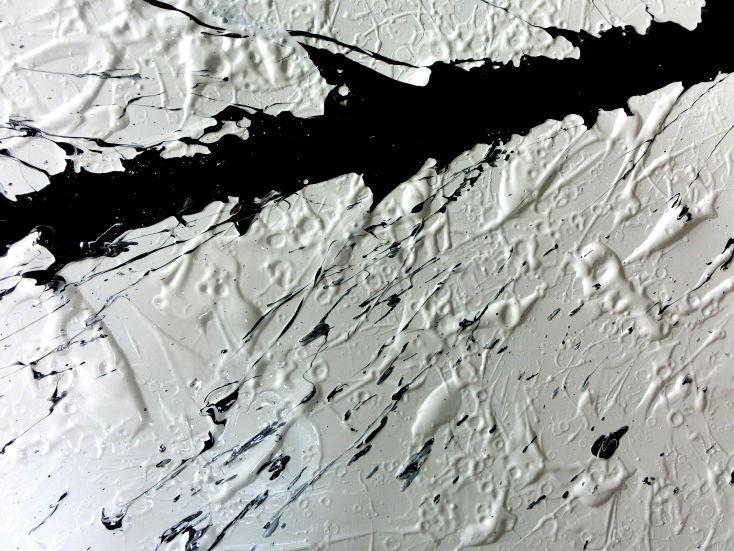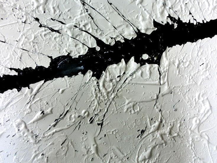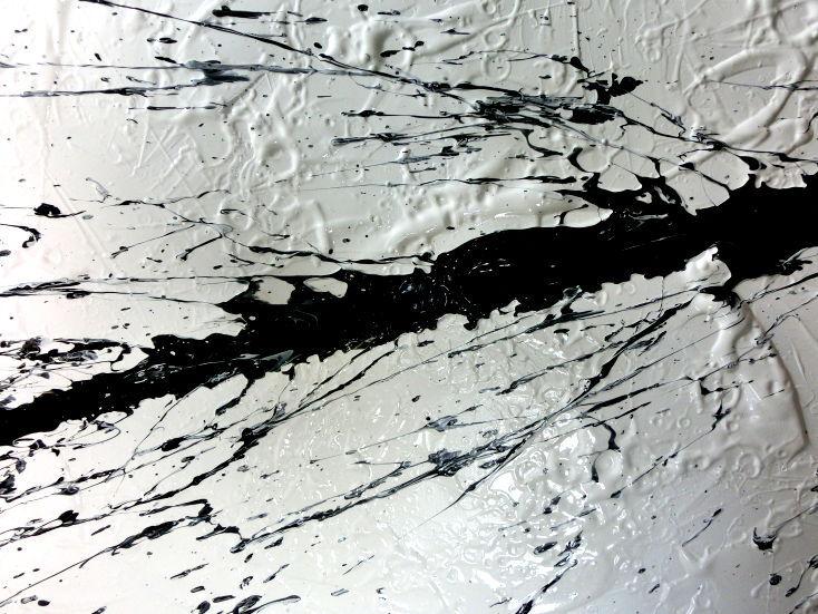 Abstraktes Bild minimalischtisch aus Acryl schwarz weiß warzer Strich Actionpainting