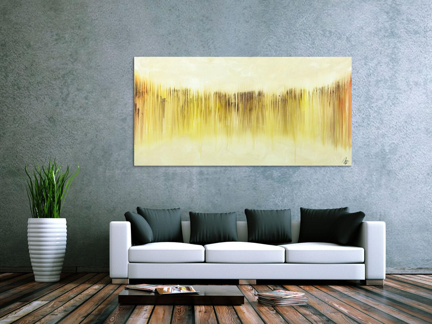 Abstraktes Gemälde auf Leinwand Abstraktes Bild modernes Gemälde auf Leinwand handgemalt beige gelb braun in 90x180cm von Alex Zerr