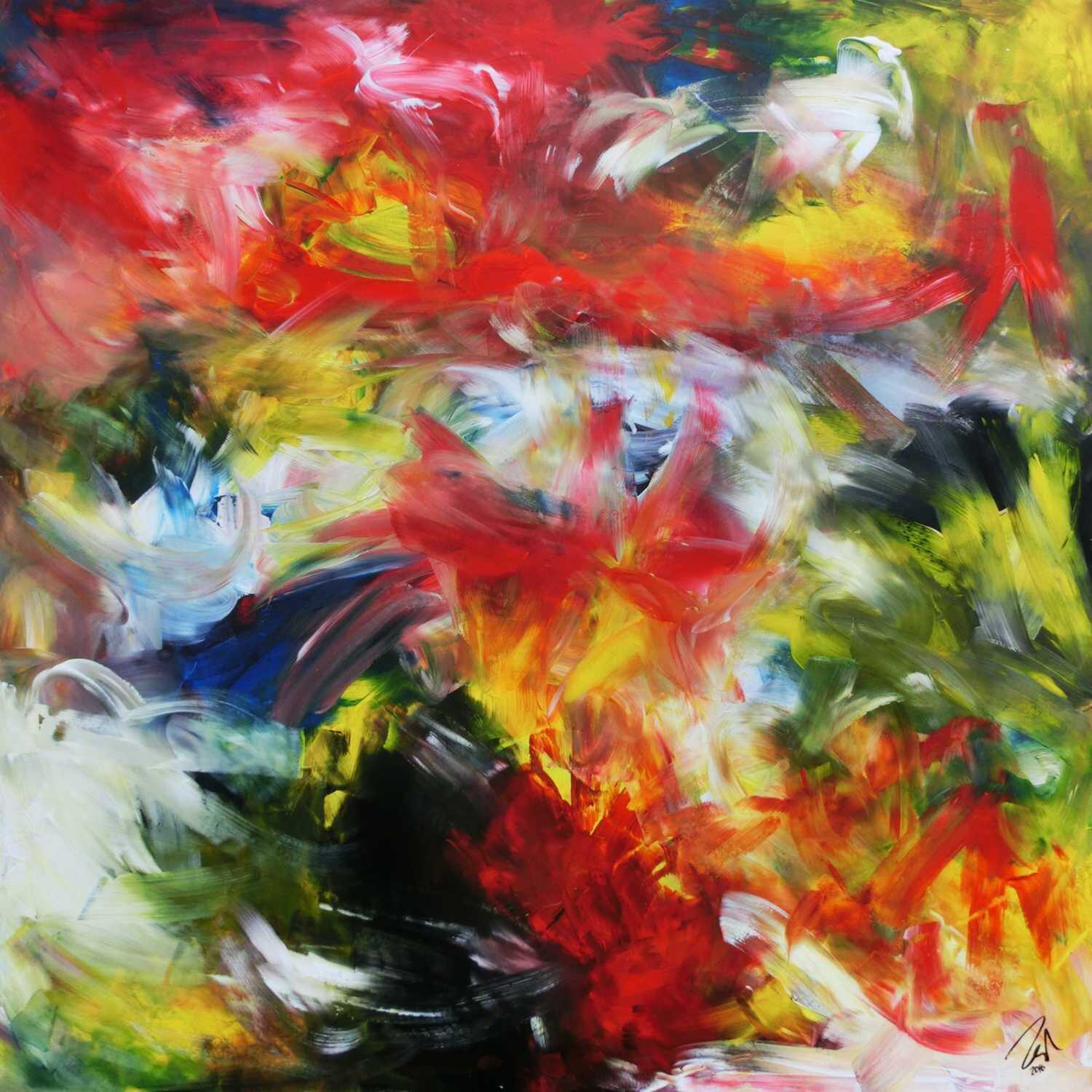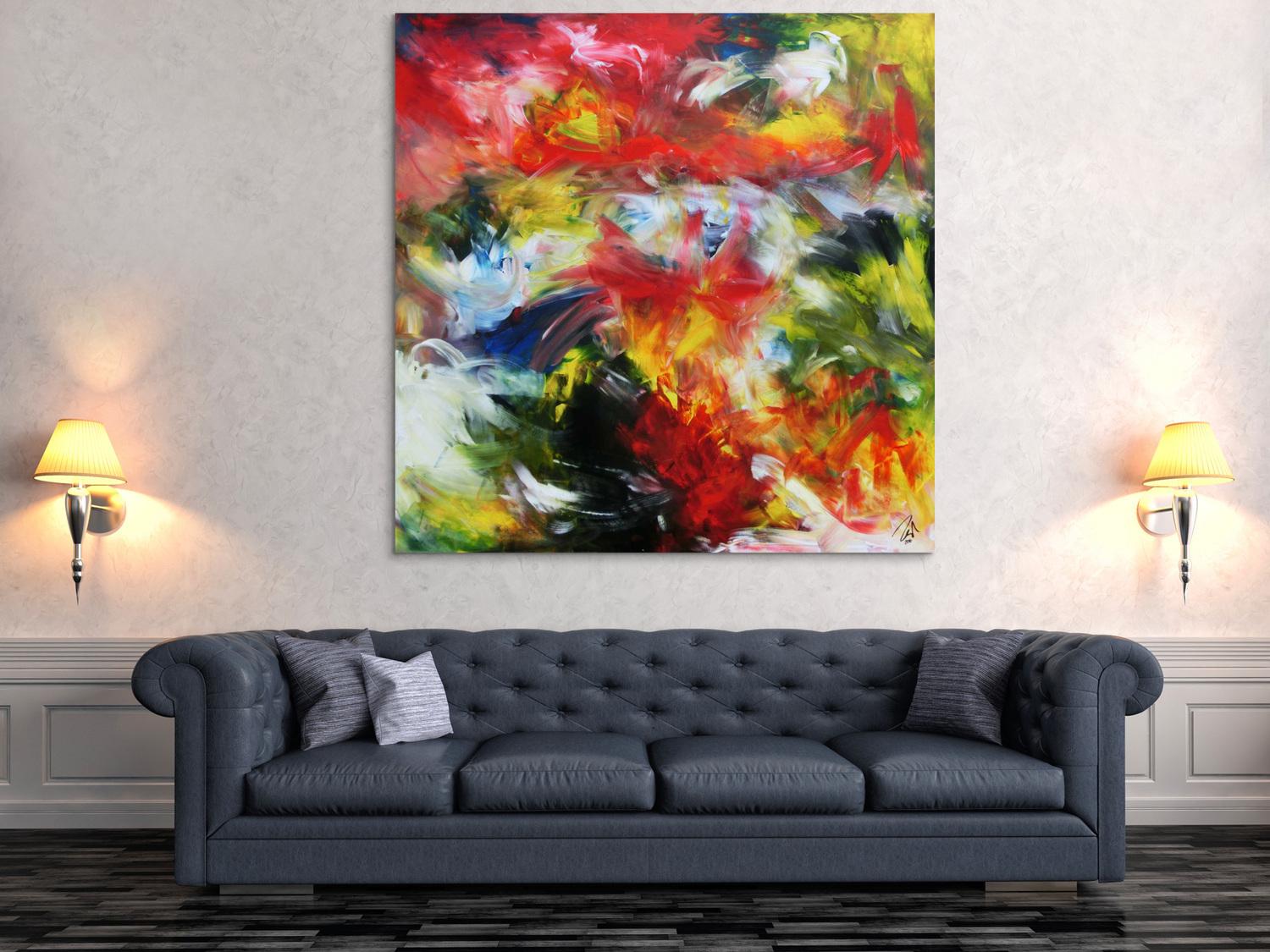 Abstraktes Gemälde auf Leinwand Abstraktes buntes Acrylgemälde sehr modern mit vielen Fabrben in 150x150cm von Alex Zerr