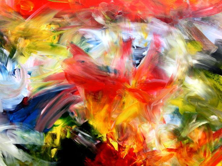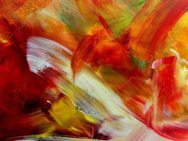 Dieses Werk ist wie alle meine Bilder: spontan entstanden, ganz intuitiv und ohne festes Konzept, und spiegelt oft meine momentane Stimmung wider wie auf der Leinwand festgehalten wurde.