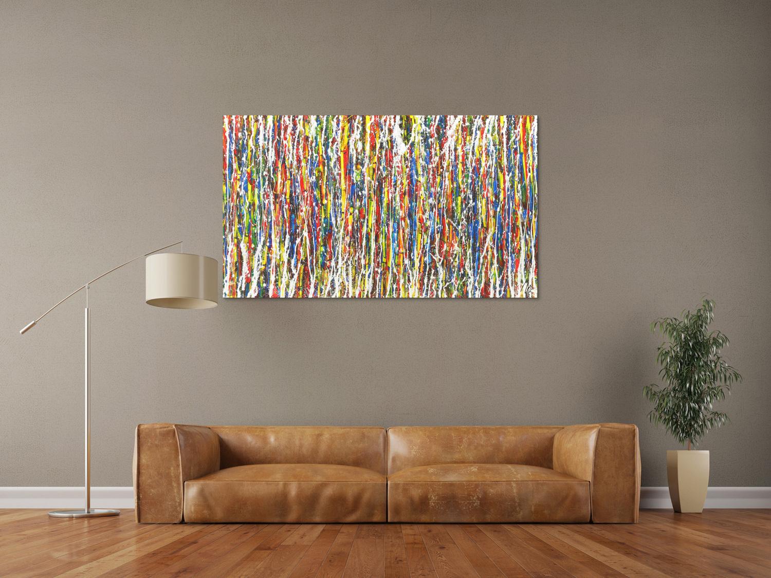 Abstraktes Gemälde auf Leinwand Abstraktes Gemälde Acryl Action Painting auf Leinwand sehr bunt handgemalt in 80x140cm von Alex Zerr