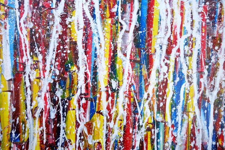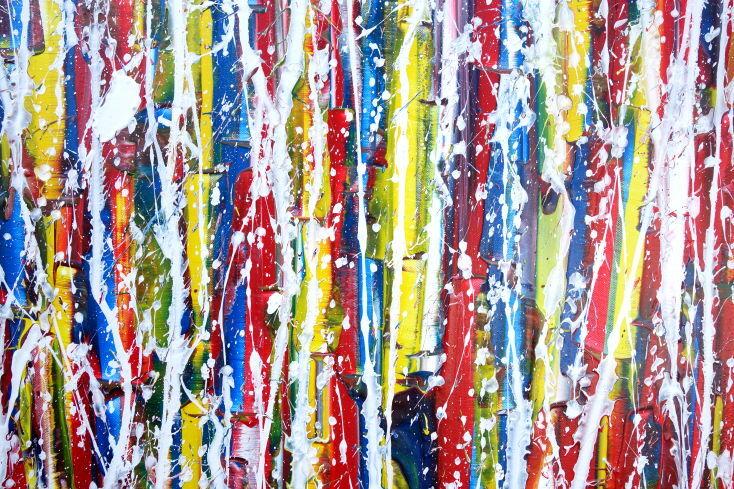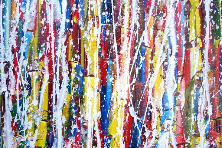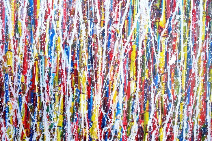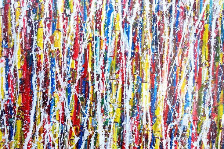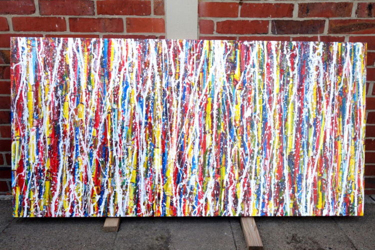 Abstraktes Gemälde auf Leinwand Abstraktes Gemälde Acrylbild modern sehr bunt weiße Streifen Modern Art zeitgenössisch in 80x160cm von Alex Zerr