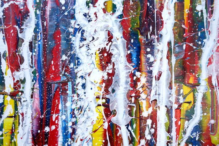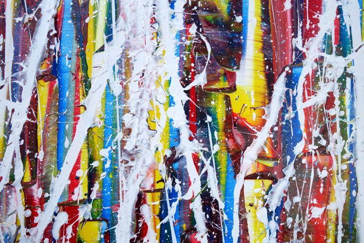 Hallo, ich bin Alex Zerr, der Künstler hinter diesem Gemälde. In meinem Atelier in Bad Lippspringe erschaffe ich abstrakte Acrylbilder, überwiegend im Action-Painting-Stil. Meißtens mit Acrylfarben und auf sehr großen XXL-Leinwänden, die meinem kreativen Prozess besonders viel Freiheit erlauben und oft zu beeindruckenden Gemälden führen.
