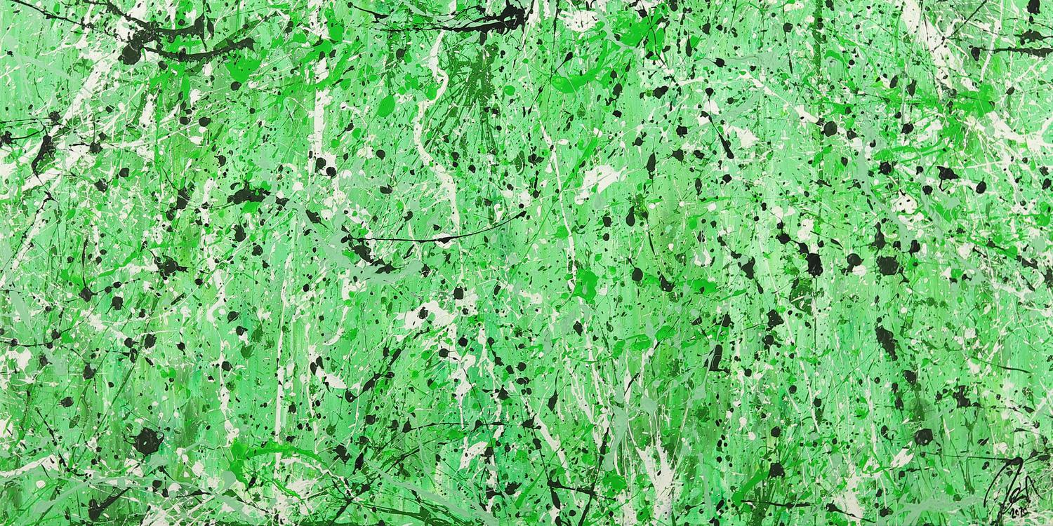 Abstraktes Gemälde auf Leinwand Abstraktes Gemälde Action Painting grün hellgrün Modern Art auf Leinwand in 60x120cm von Alex Zerr