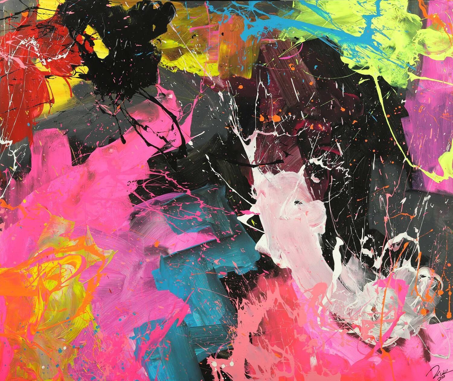 Abstraktes Gemälde Action Painting Neon Farben Neon Farben fluoreszierend