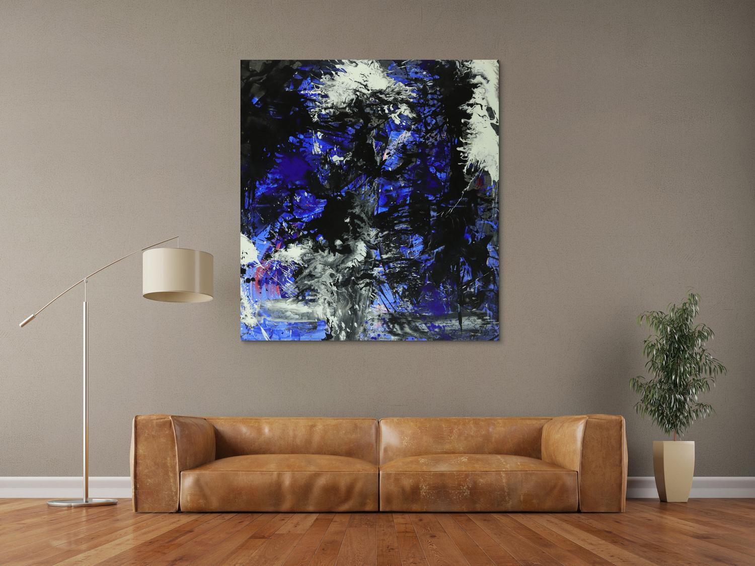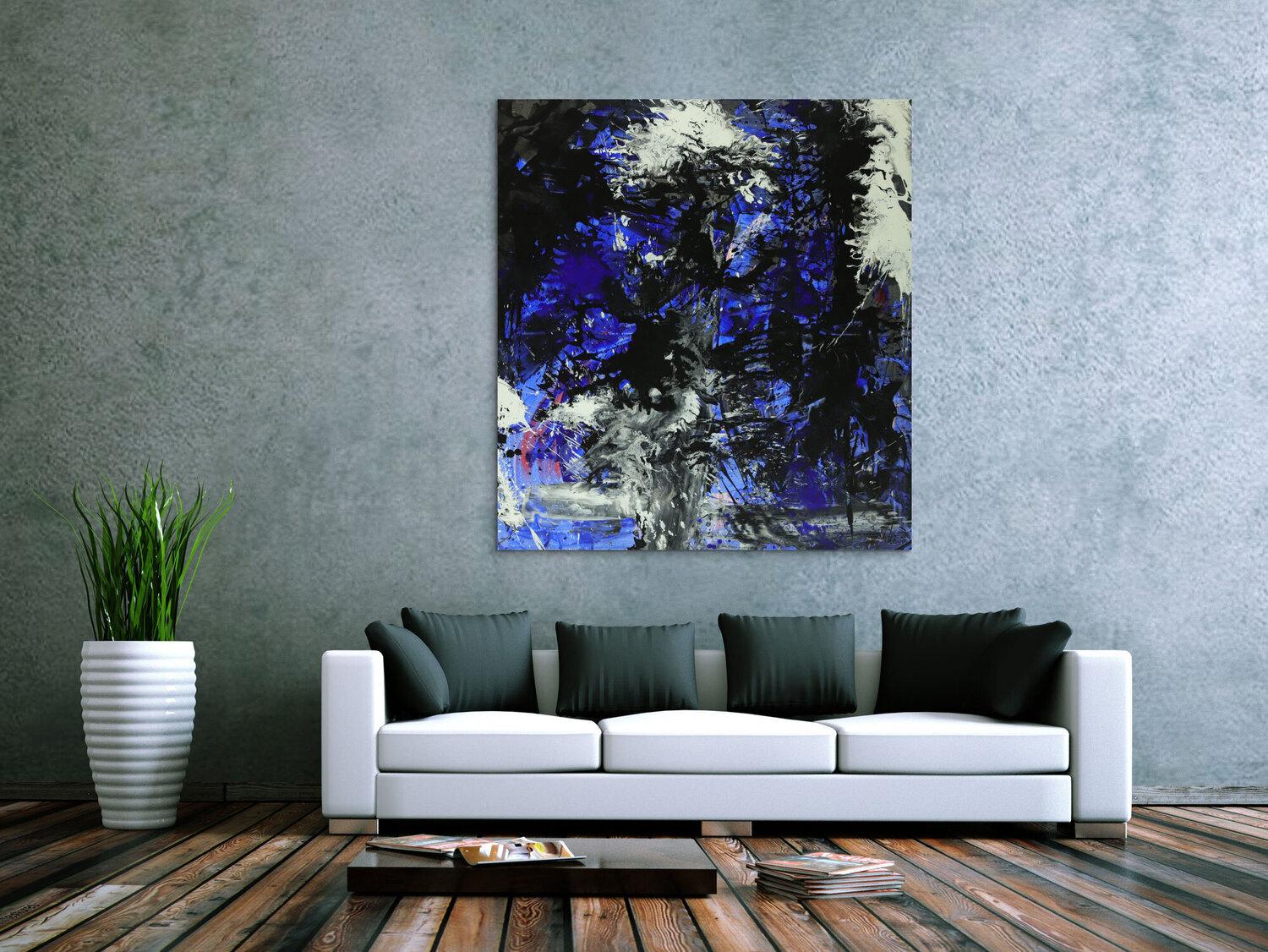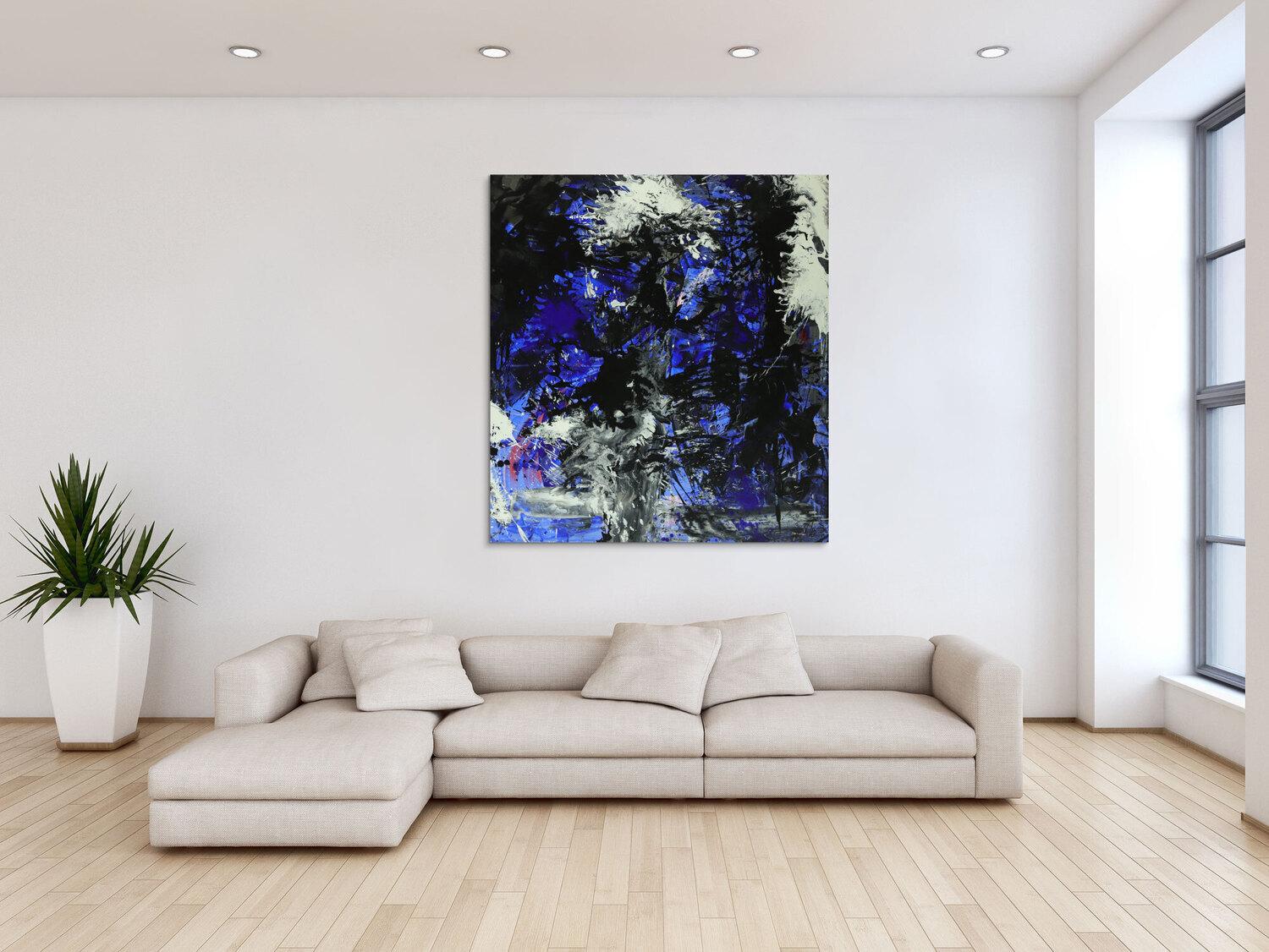 Abstraktes Gemälde auf Leinwand Abstraktes Gemälde auf Leinwand Action Painting blau schwarz in 130x120cm von Alex Zerr