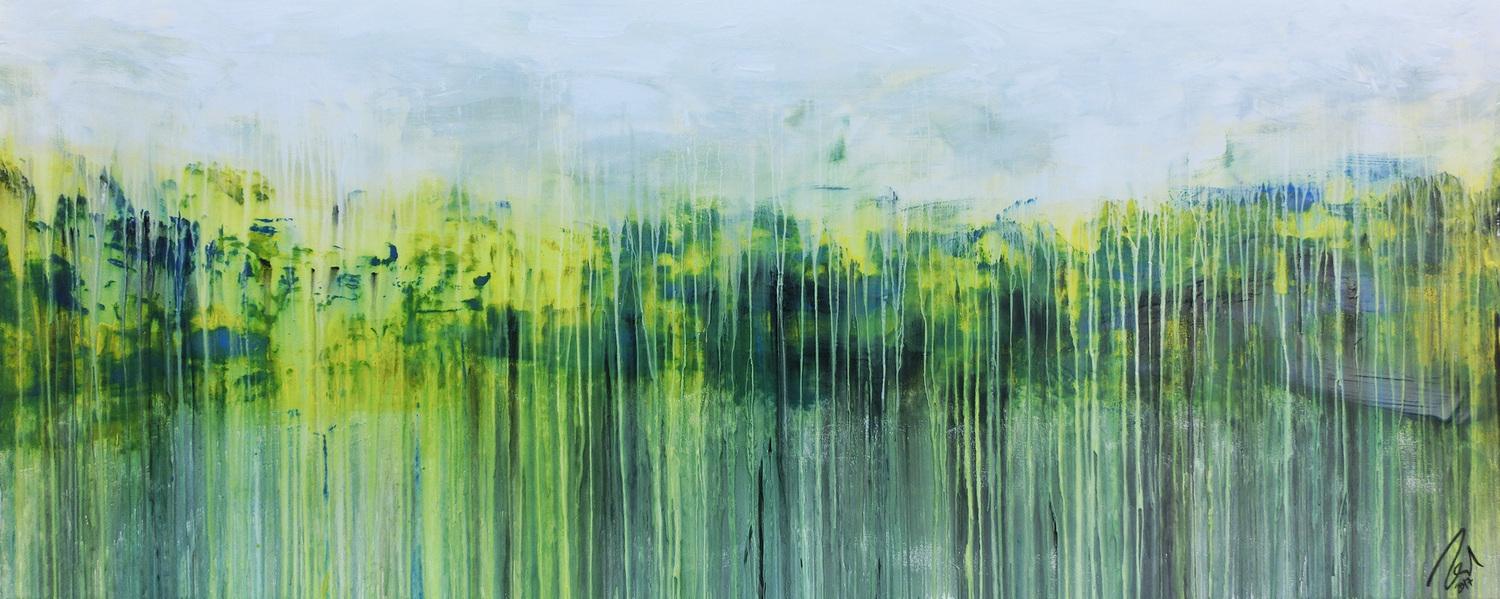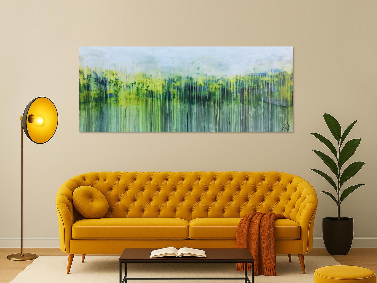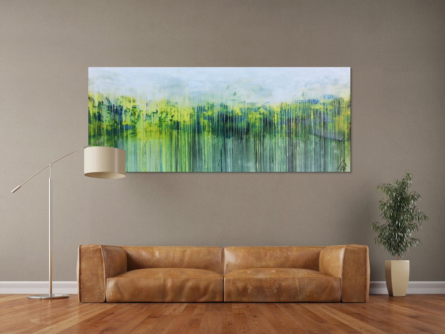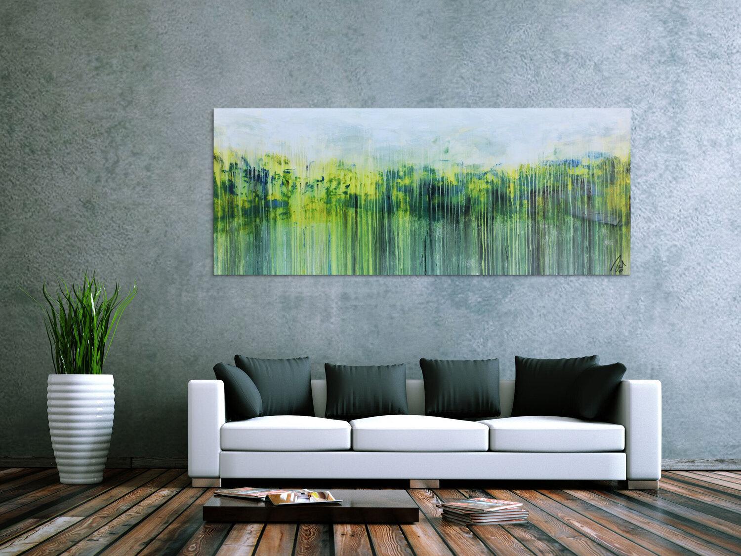 Abstraktes Gemälde auf Leinwand Abstraktes Gemälde aus Acryl handgemaltes Bild Fließtechnik in blau grün gelb weiß in 80x200cm von Alex Zerr