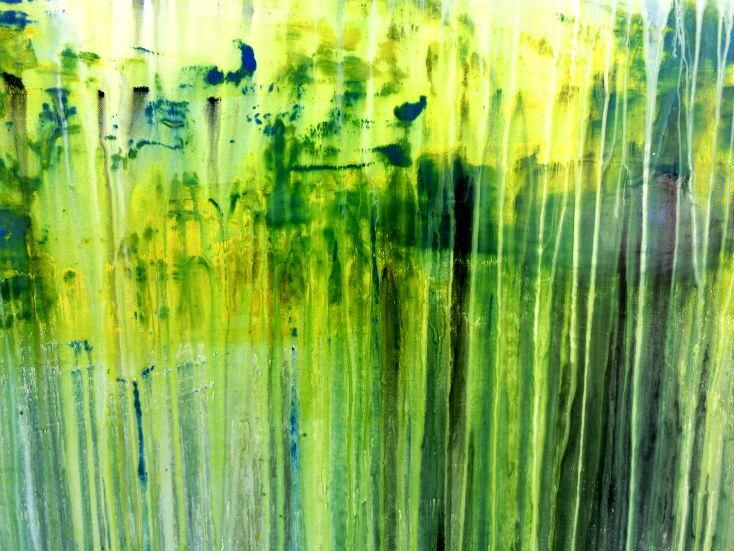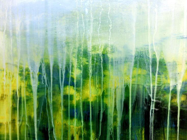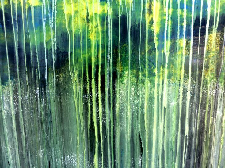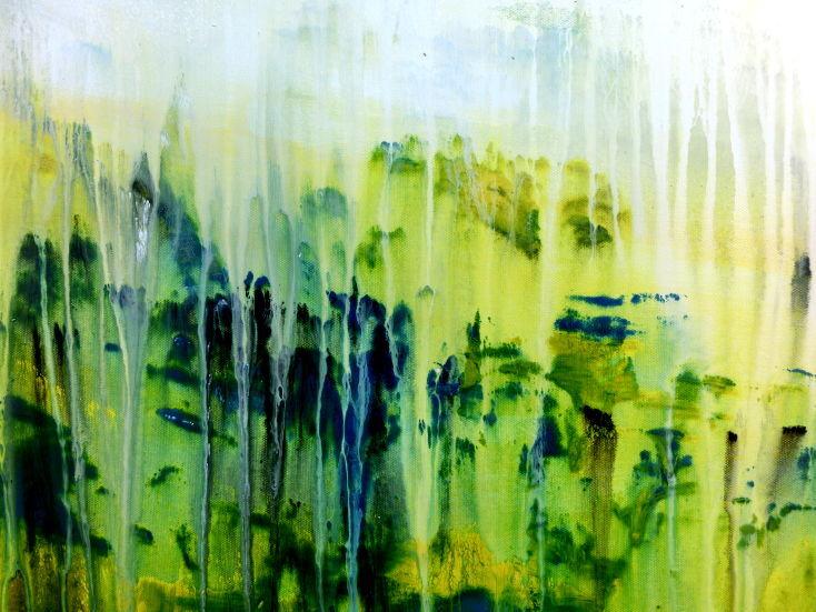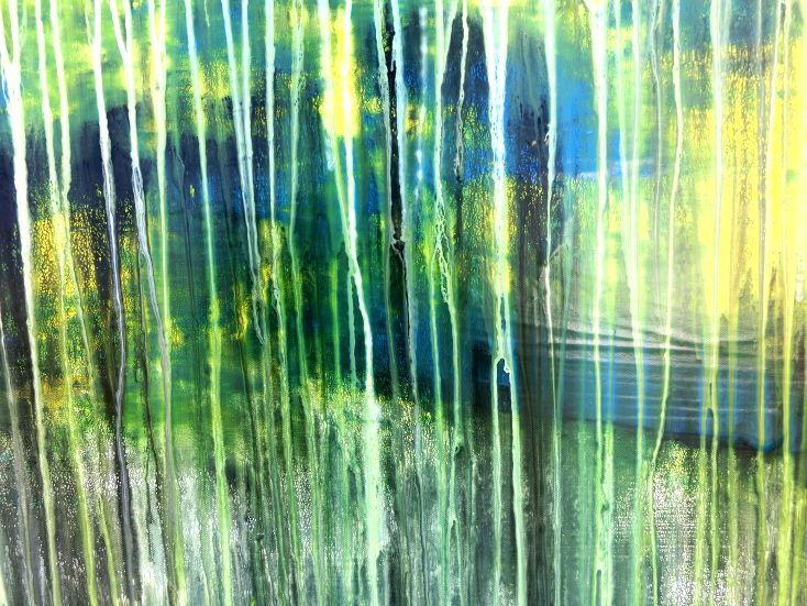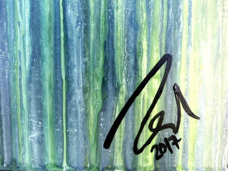 Abstraktes Gemälde aus Acryl handgemaltes Bild Fließtechnik in blau grün gelb weiß