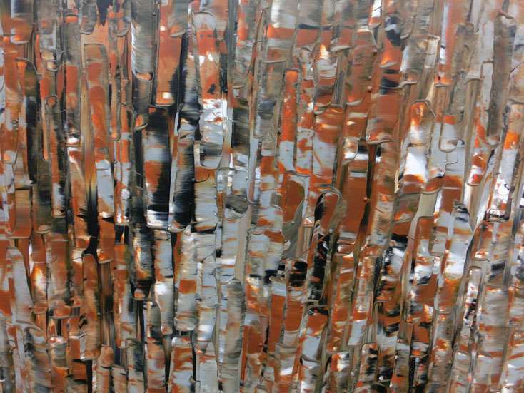 Dieses abstrakte Acrylbild ist ein handgemaltes Original vom Künstler Alex Zerr aus Bad Lisppringe und ist im Jahr 2014 in seinem Atelier entstanden. Das Bild hat eine Größe von 100x200cm und ist bereits auf einem hochwertigen und stabilem Rahmen aufgespannt. Dadurch kann das Bild nach der Lieferung direkt an die Wand gehängt werden und sofort in Ihrem Raum wirken. Alle Seiten des Gemäldes sind passend zum Motiv bemalt, so dass kein zusätzlicher Rahmen benötigt wird.