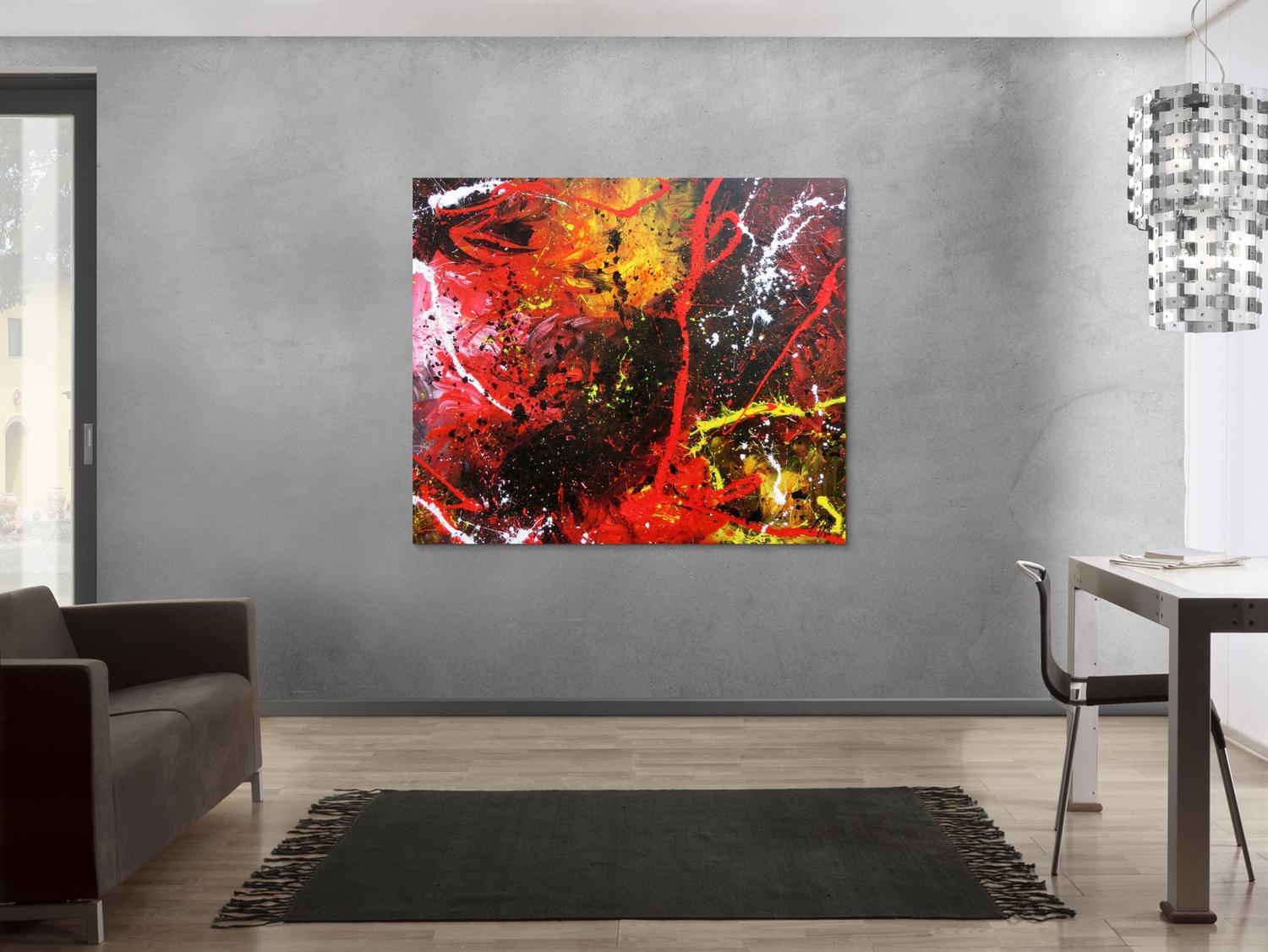 Abstraktes Gemälde auf Leinwand Abstraktes Gemälde aus Acryl modern und zeitgenössisch mit schwarz und rot in 130x150cm von Alex Zerr