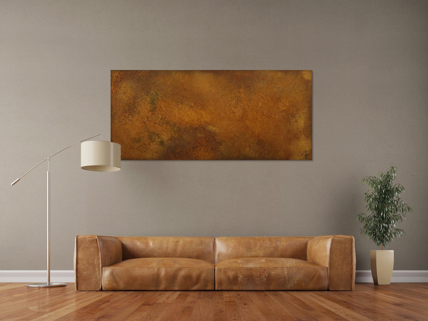 Abstraktes Gemälde aus echtem Rost auf Leinwand handgemalt Modern Art Rostfarbe