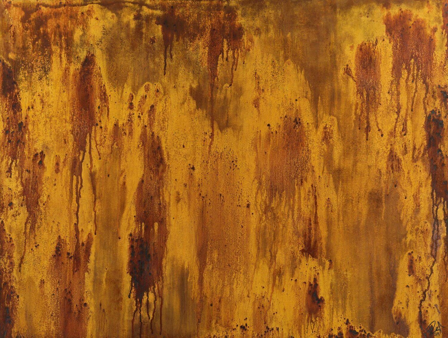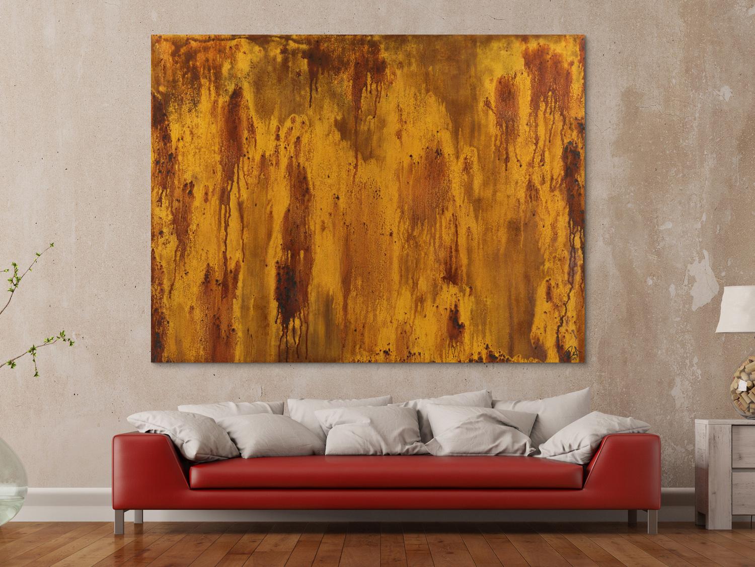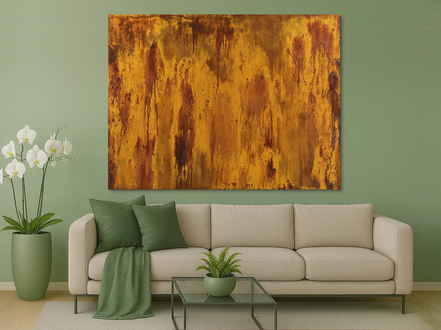 Abstraktes Gemälde aus echtem Rost auf Leinwand handgemalt zeitgenössisch modern groß