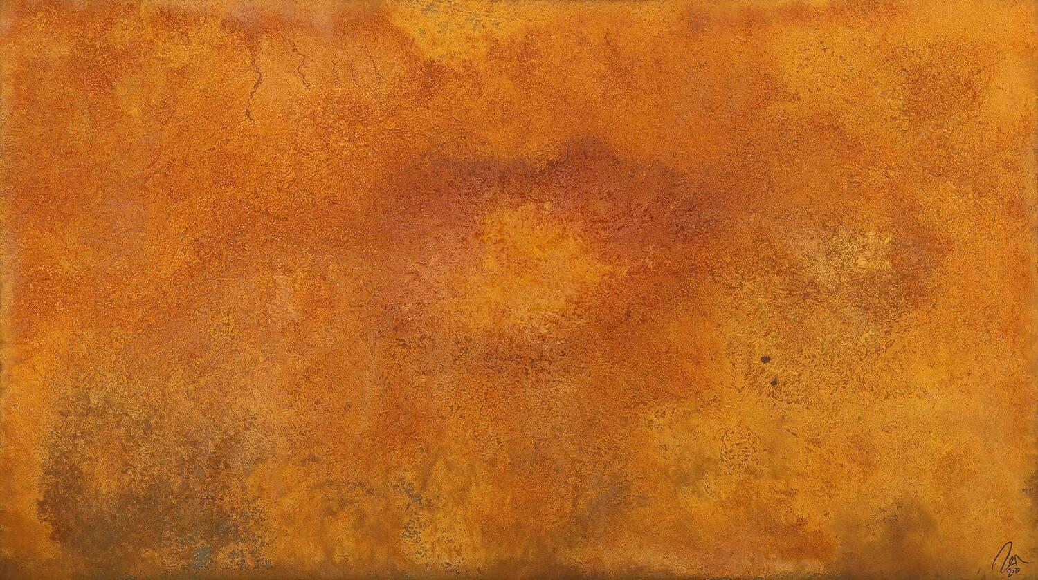 Abstraktes Gemälde auf Leinwand Abstraktes Gemälde aus echtem Rost handgemalt auf Leinwand Modern Art in 100x180cm von Alex Zerr