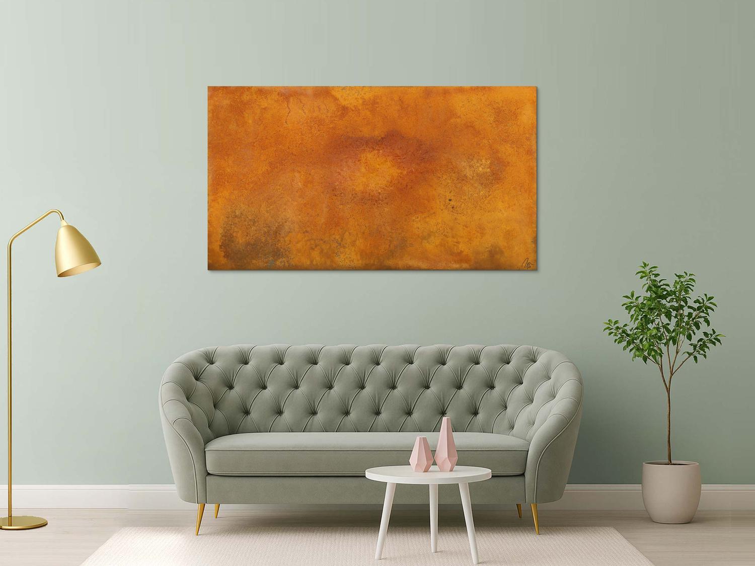 Das Bild hat die Beschreibung "Kunst aus Rost. Abstrakte Bilder aus echtem Rost auf Leinwand." und der der durch den Künstler vergebene Titel ist: "Ohne Titel" - Abstraktes Acrylbild Nr. 1644.