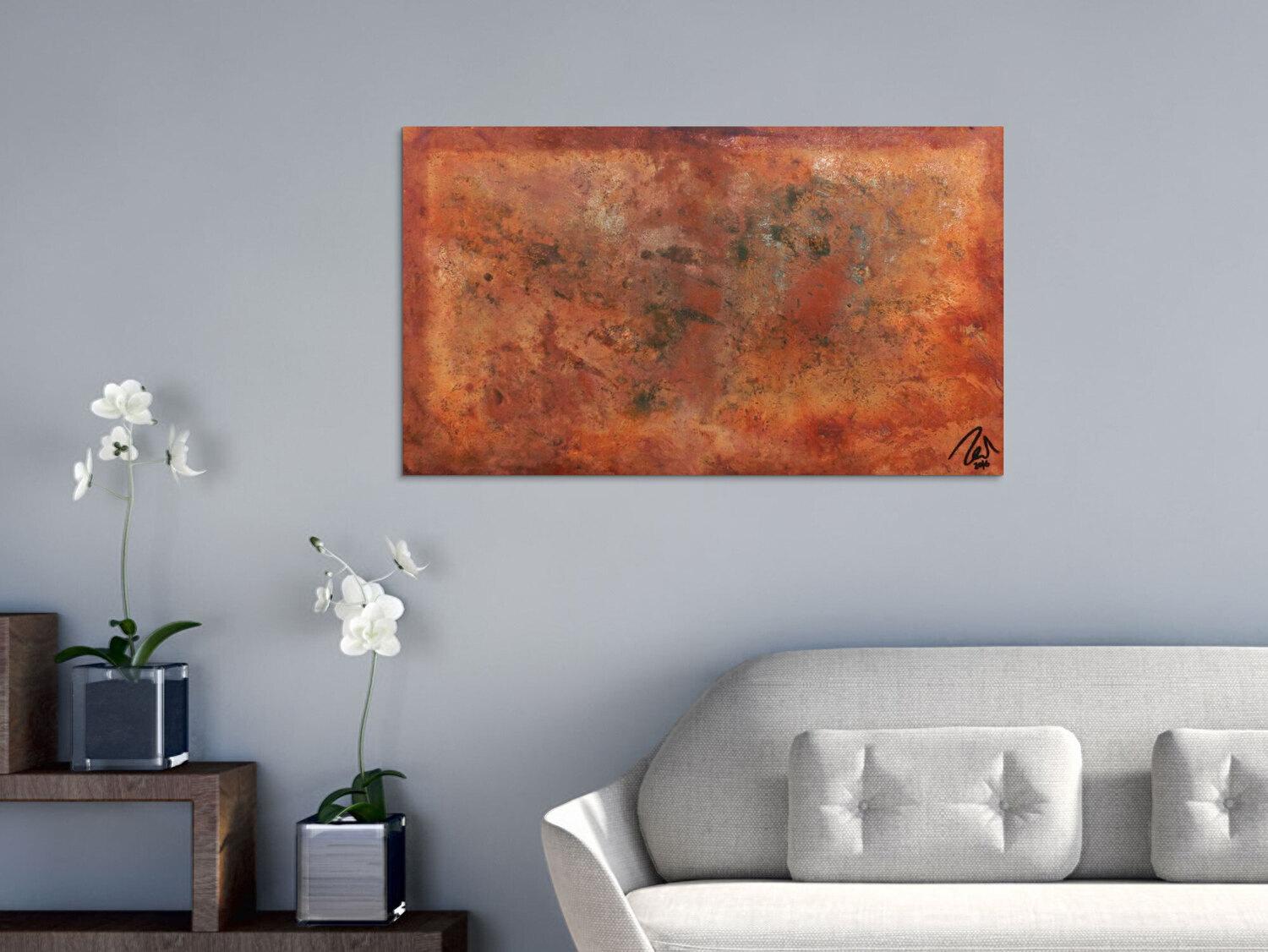 Abstraktes Gemälde auf Leinwand Abstraktes Gemälde aus echtem Rost modern schlicht in 60x100cm von Alex Zerr