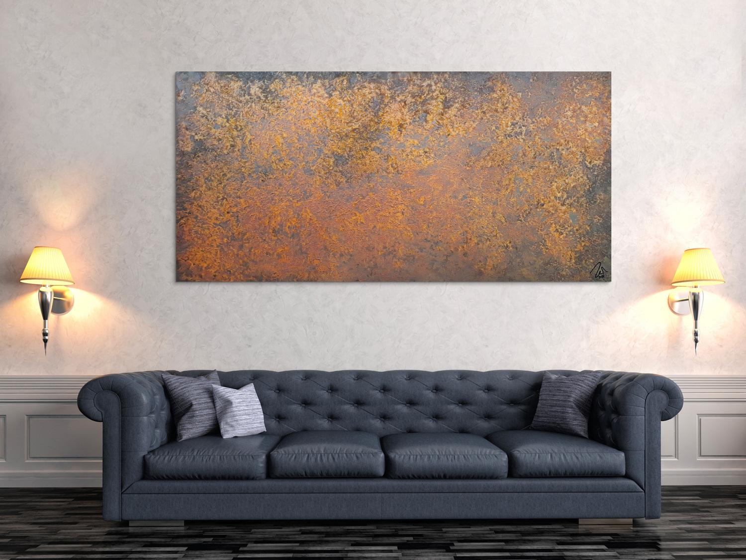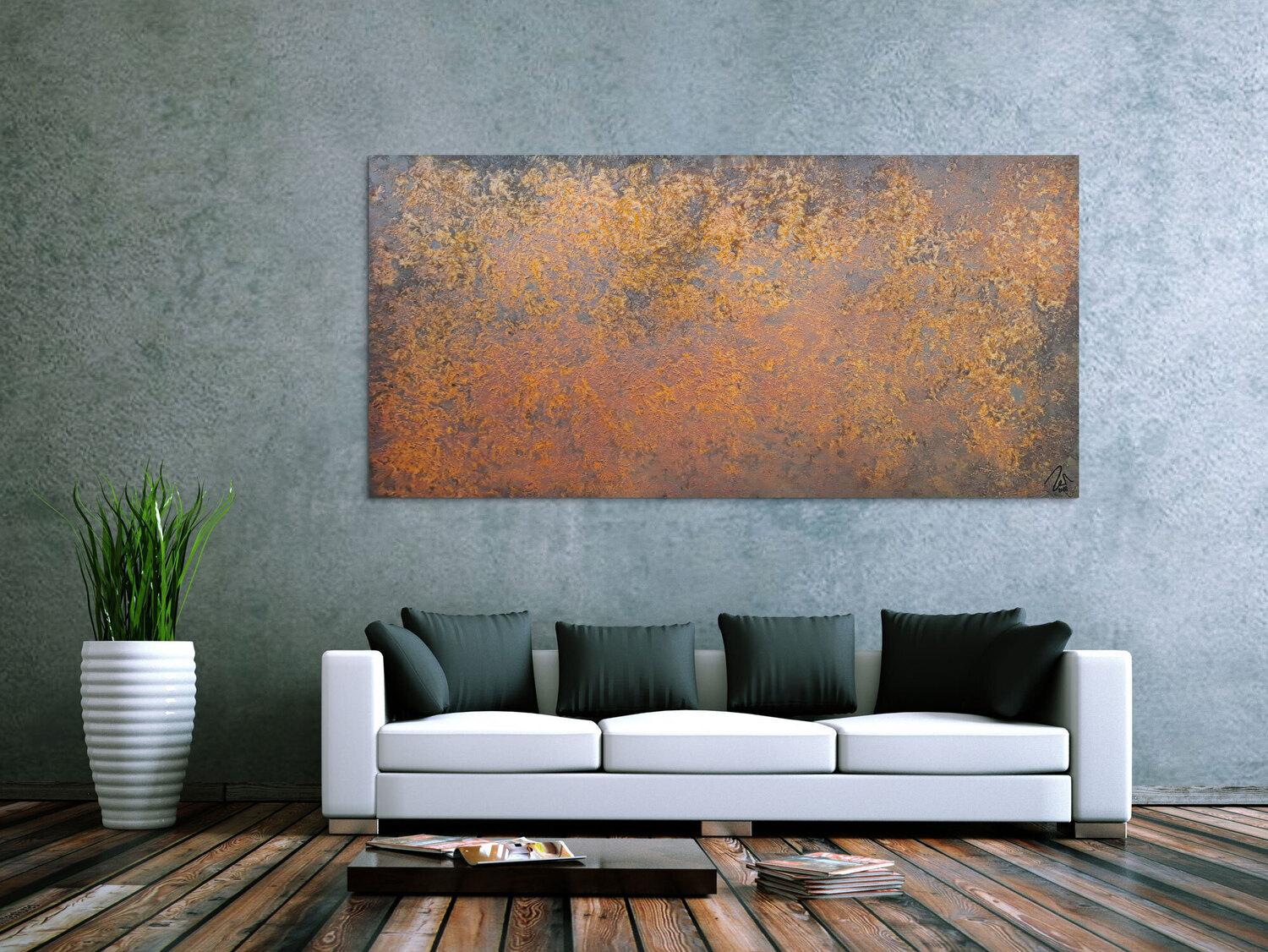 Abstraktes Gemälde auf Leinwand Abstraktes Gemälde aus echtem Rost sehr modern in 100x200cm von Alex Zerr