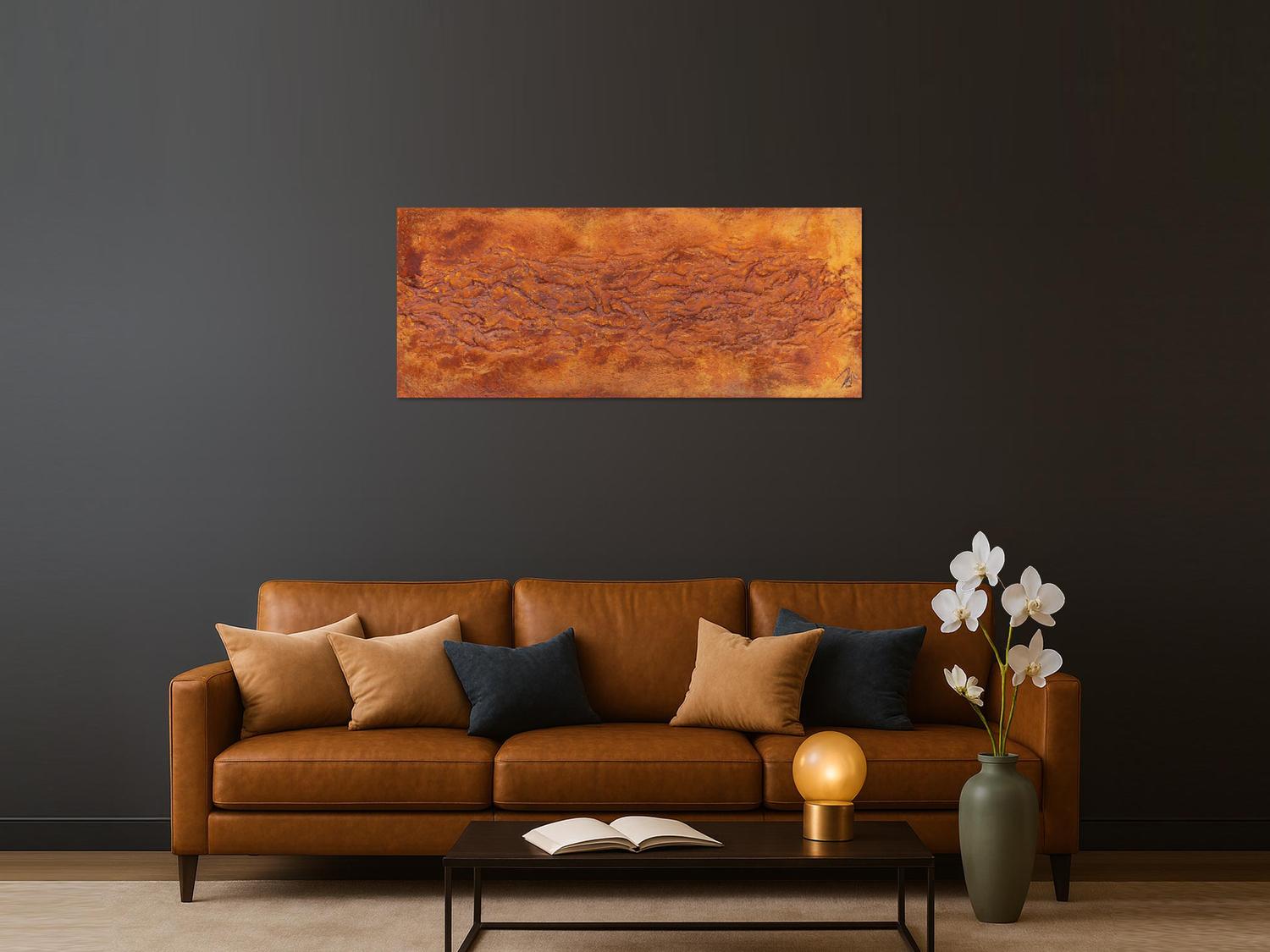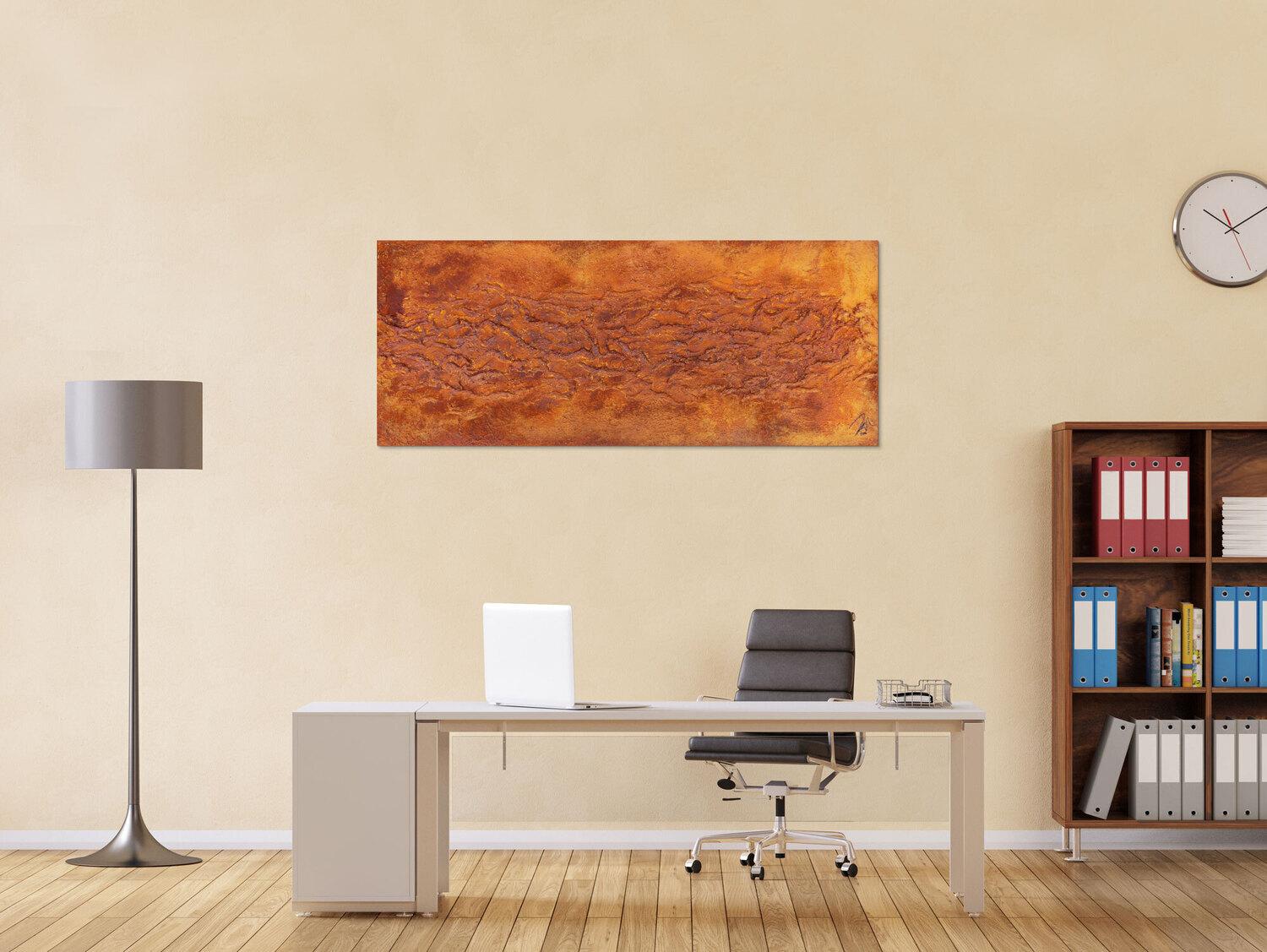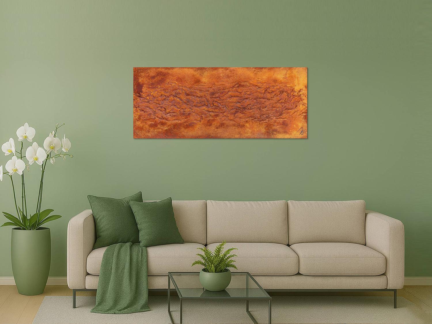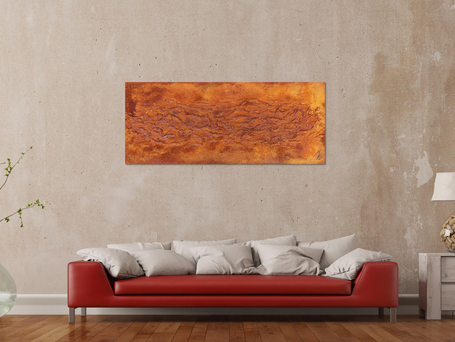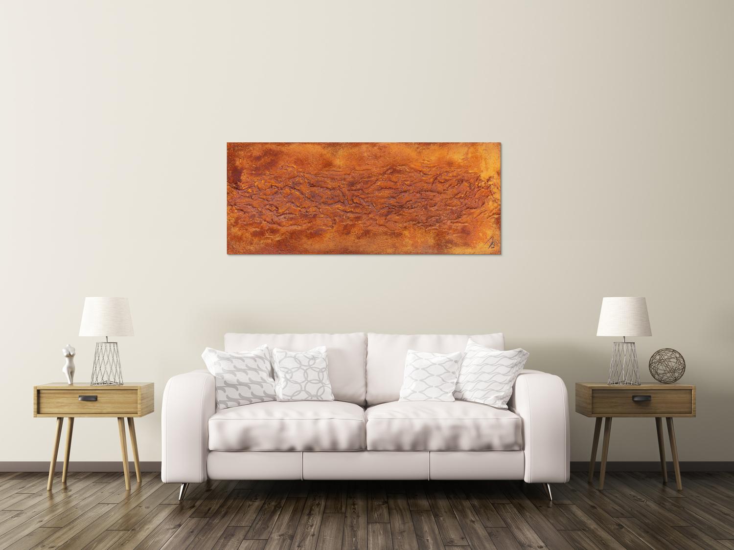 Abstraktes Gemälde auf Leinwand Abstraktes Gemälde aus echtem Rost und starker Struktur sehr modern in 60x150cm von Alex Zerr