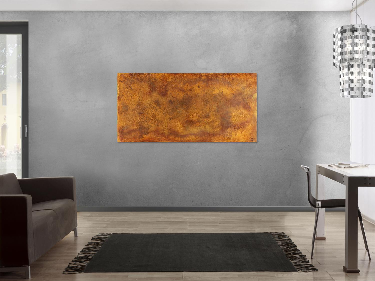 Abstraktes Gemälde auf Leinwand Abstraktes Gemälde aus Rost auf Leinwand zeitenössische Kunst aus echtem Rost handgemalt in 80x160cm von Alex Zerr