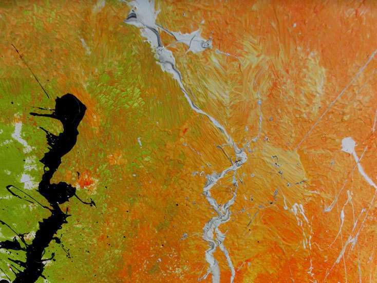 Dieses abstrakte Acrylbild ist ein handgemaltes Original vom Künstler Alex Zerr aus Bad Lisppringe und ist im Jahr 2014 in seinem Atelier entstanden. Das Bild hat eine Größe von 100x150cm und ist bereits auf einem hochwertigen und stabilem Rahmen aufgespannt. Dadurch kann das Bild nach der Lieferung direkt an die Wand gehängt werden und sofort in Ihrem Raum wirken. Alle Seiten des Gemäldes sind passend zum Motiv bemalt, so dass kein zusätzlicher Rahmen benötigt wird.