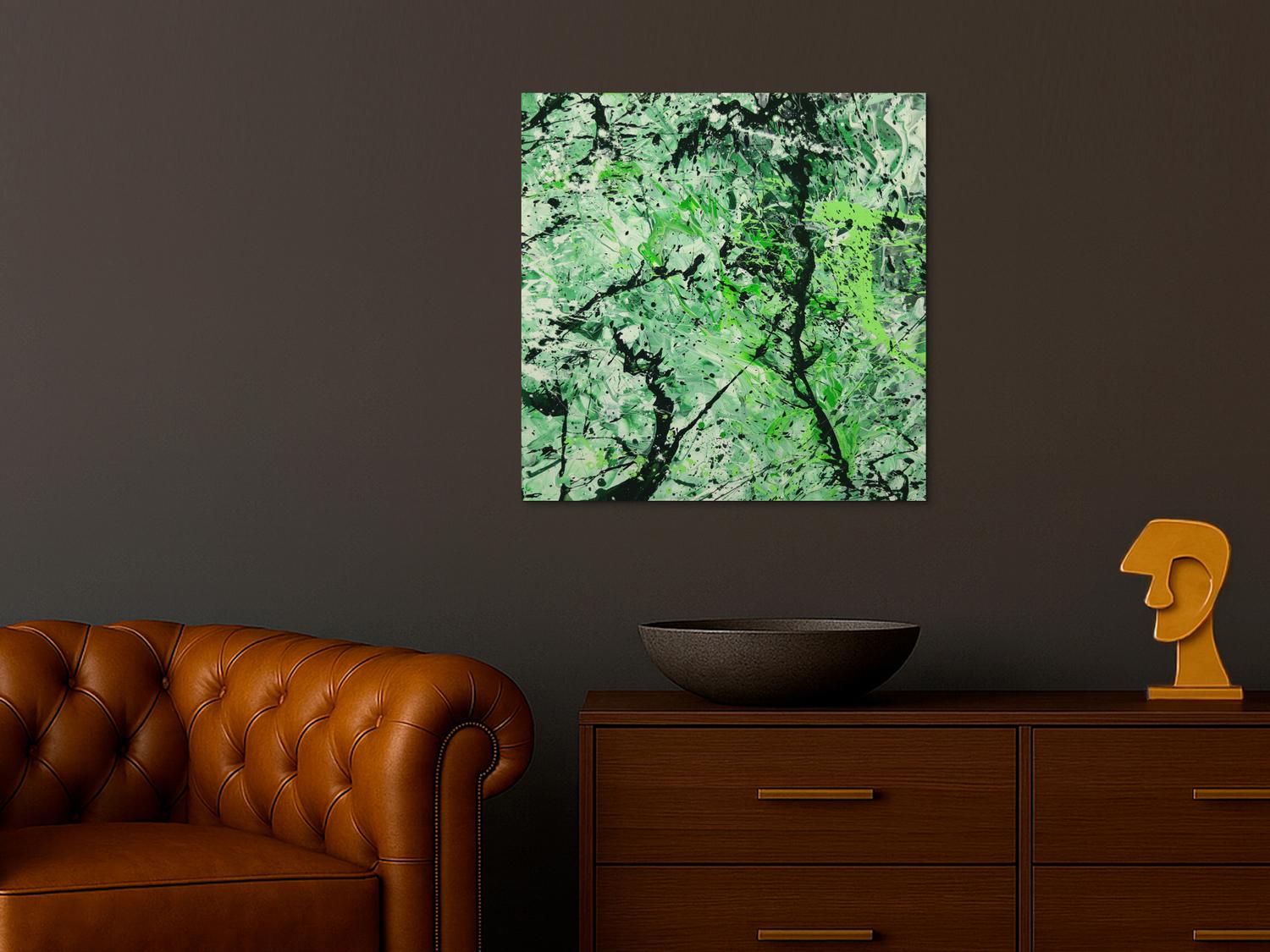 Dieses abstrakte Acrylbild ist ein handgemaltes Original vom Künstler Alex Zerr aus Bad Lisppringe und ist im Jahr 2020 in seinem Atelier entstanden. Das Bild hat eine Größe von 70x70cm und ist bereits auf einem hochwertigen und stabilem Rahmen aufgespannt. Dadurch kann das Bild nach der Lieferung direkt an die Wand gehängt werden und sofort in Ihrem Raum wirken. Alle Seiten des Gemäldes sind passend zum Motiv bemalt, so dass kein zusätzlicher Rahmen benötigt wird.