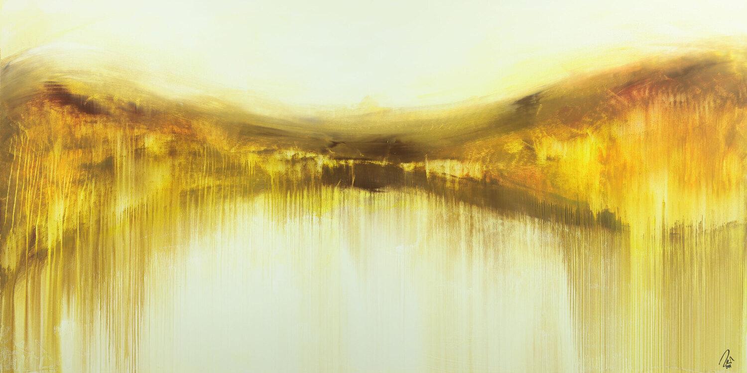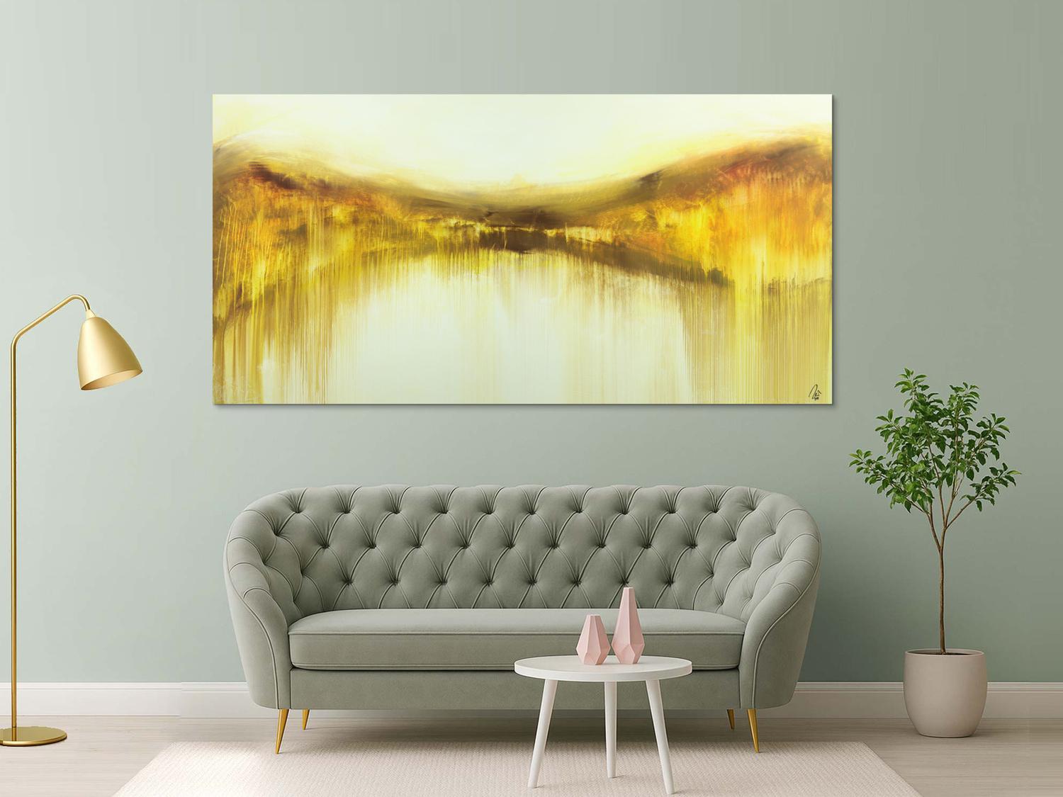 Abstraktes Gemälde auf Leinwand Abstraktes Gemälde handgemalt auf Leinwand weiß gelb braun zeitgenössisch in 120x240cm von Alex Zerr