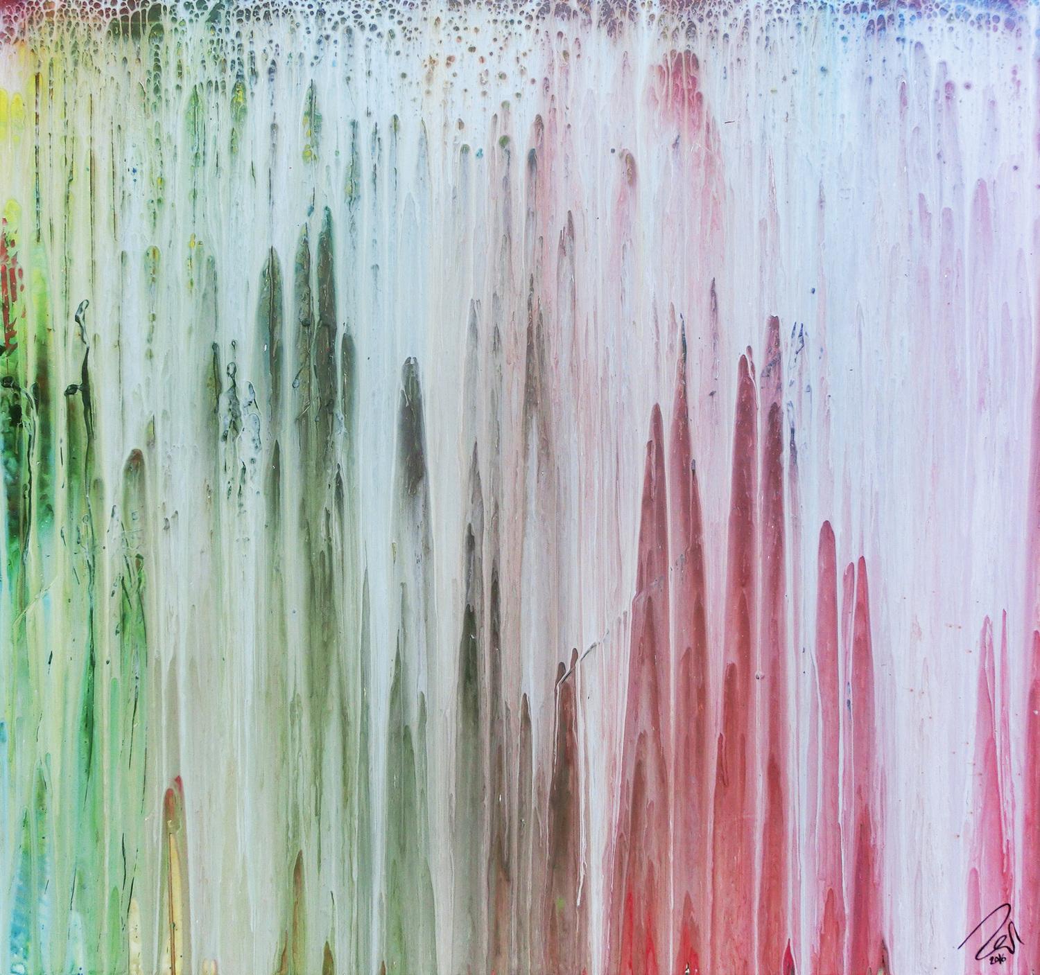 Abstraktes Gemälde helle Farben modern bunt Fließtechnik