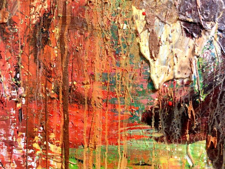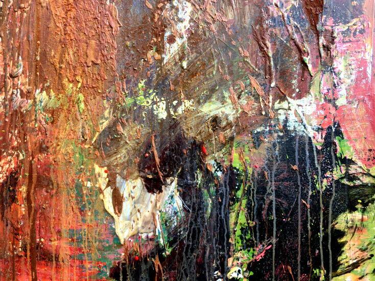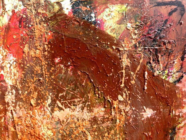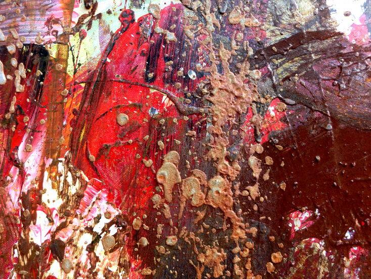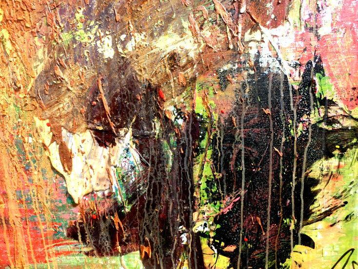 Dieses Werk ist wie alle meine Bilder: spontan entstanden, ganz intuitiv und ohne festes Konzept, und spiegelt oft meine momentane Stimmung wider wie auf der Leinwand festgehalten wurde.