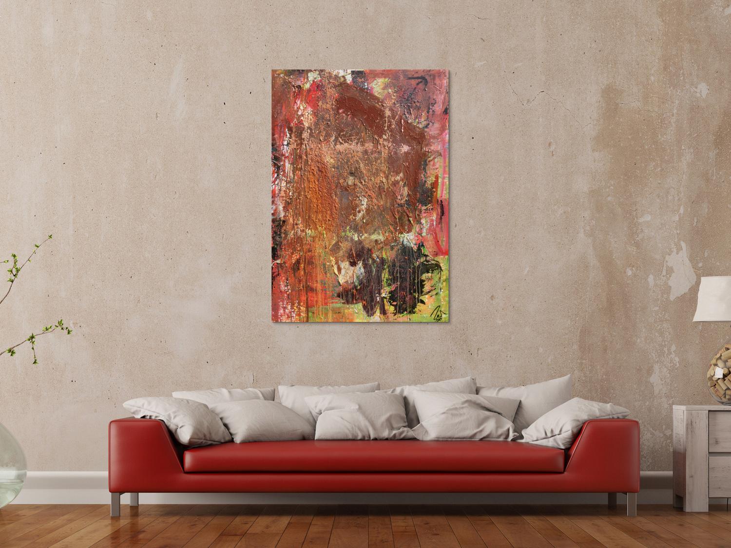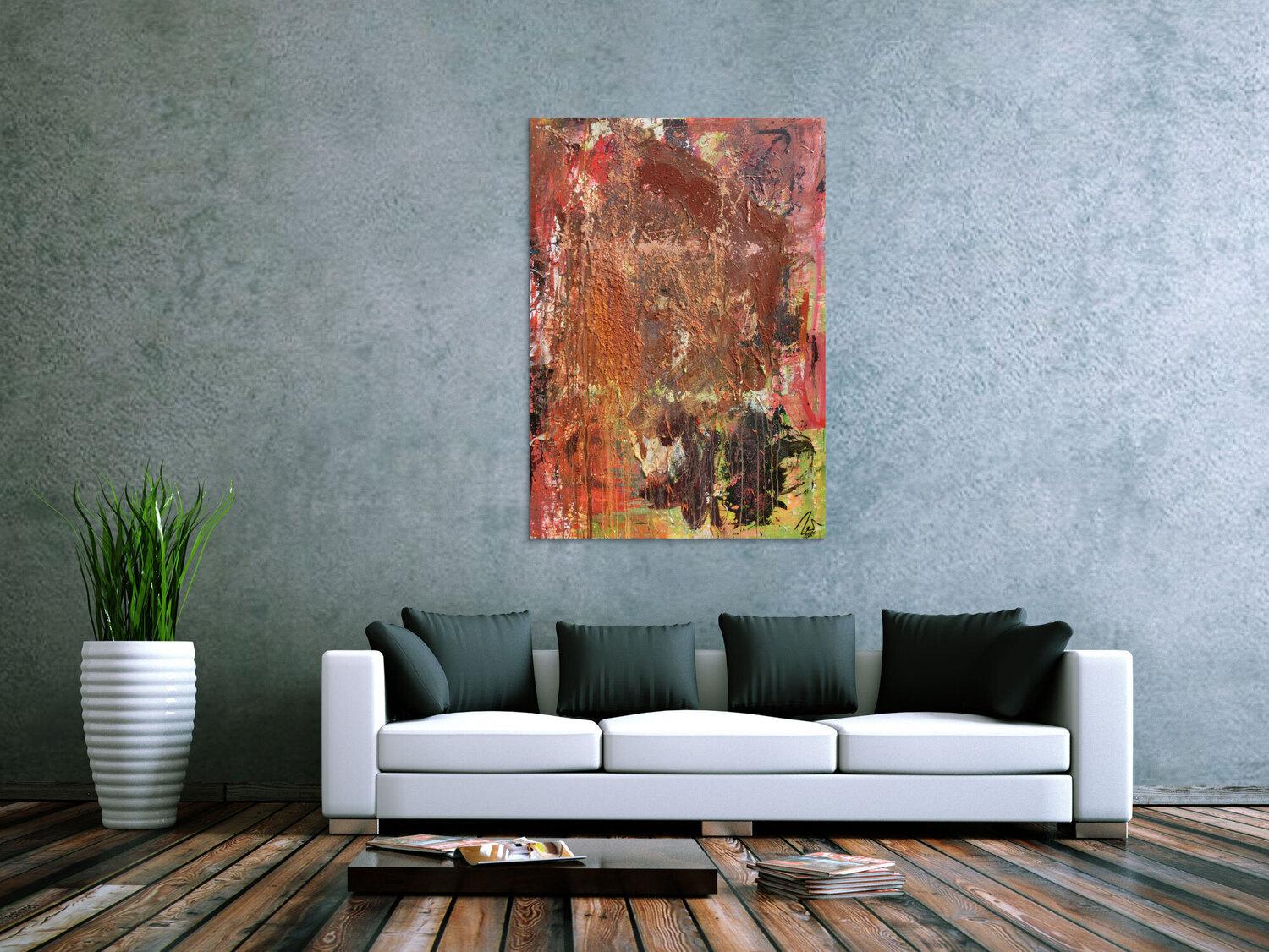 Abstraktes Gemälde in Mischtechnik Acryl und Rost sehr modern und einzigartig mit Struktur
