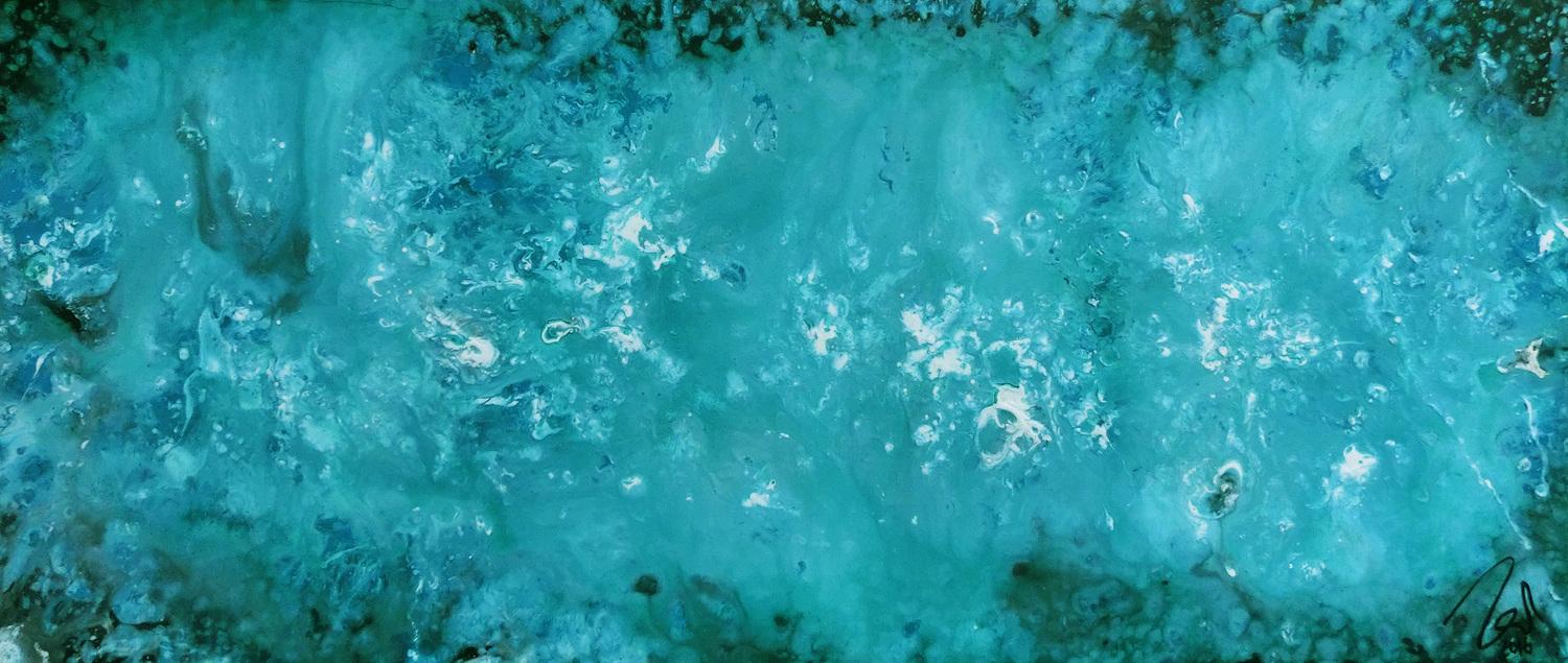 Abstraktes Gemälde auf Leinwand Abstraktes Gemälde in türkis modernes Acrylbild schlicht in 60x140cm von Alex Zerr