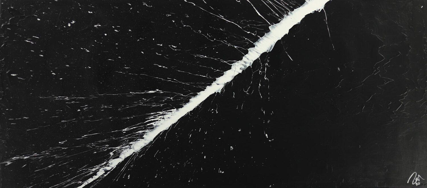 Abstraktes Gemälde minimalistisch schwarz weiß handgemalt Action Painting auf Leinwand