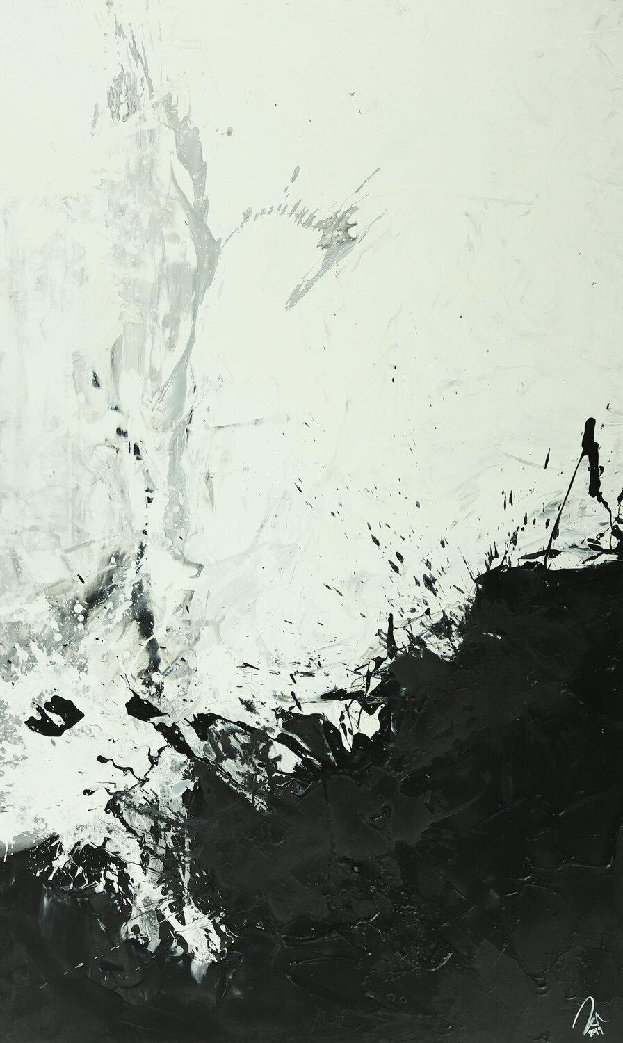 Abstraktes Gemälde minimalistisch schwarz weiß Mondern Art auf Leinwand handgemalt Hochformat