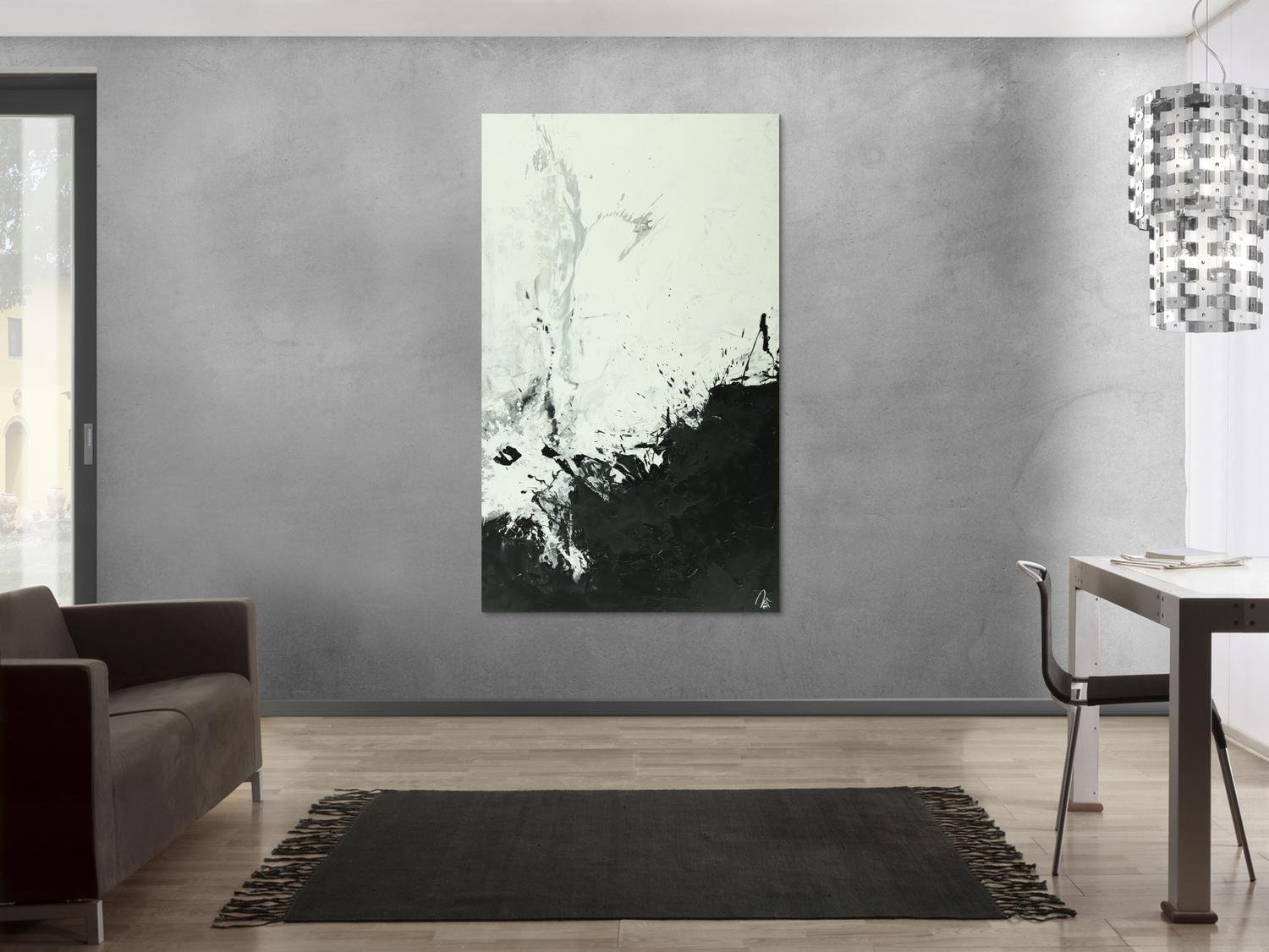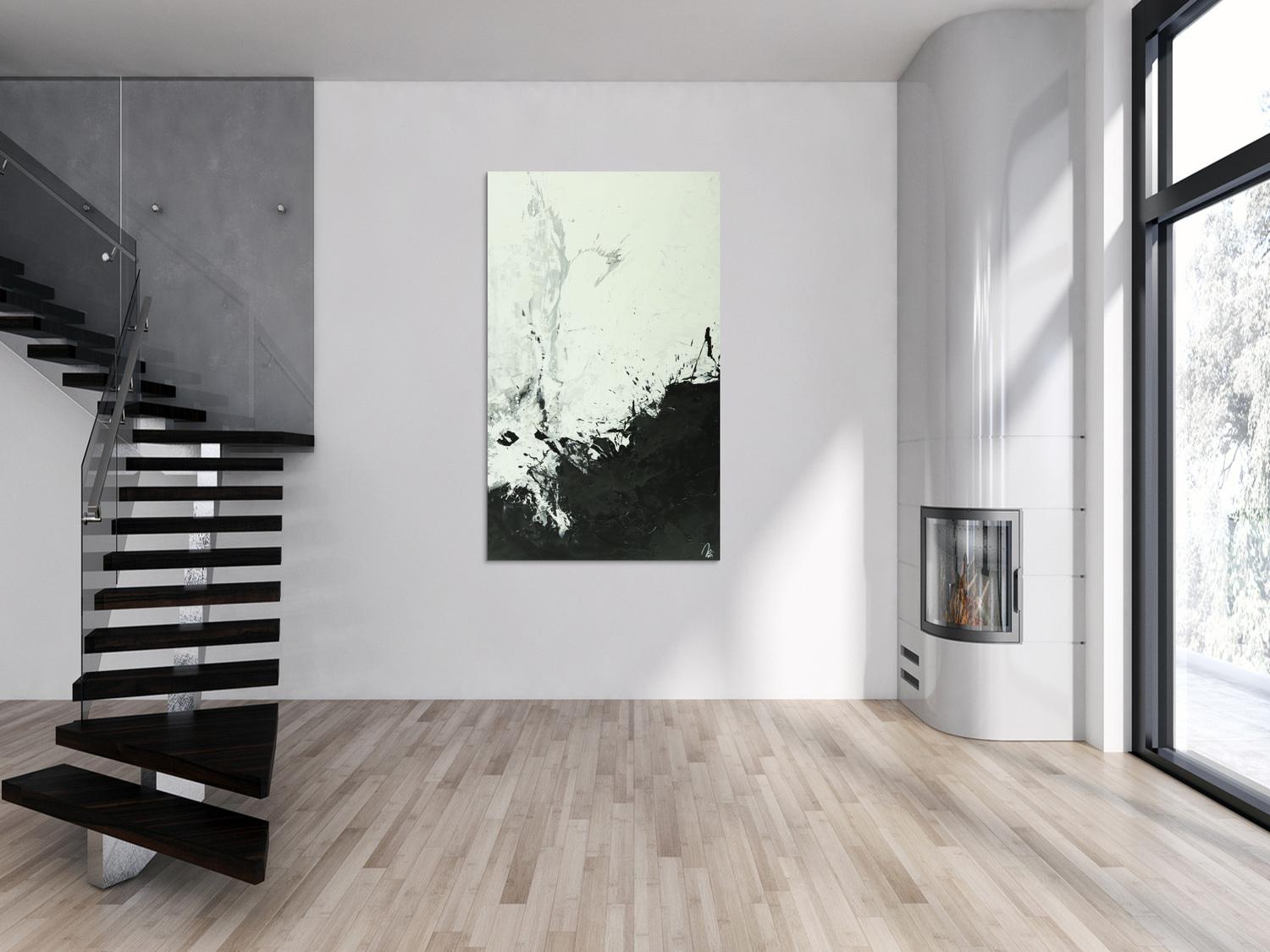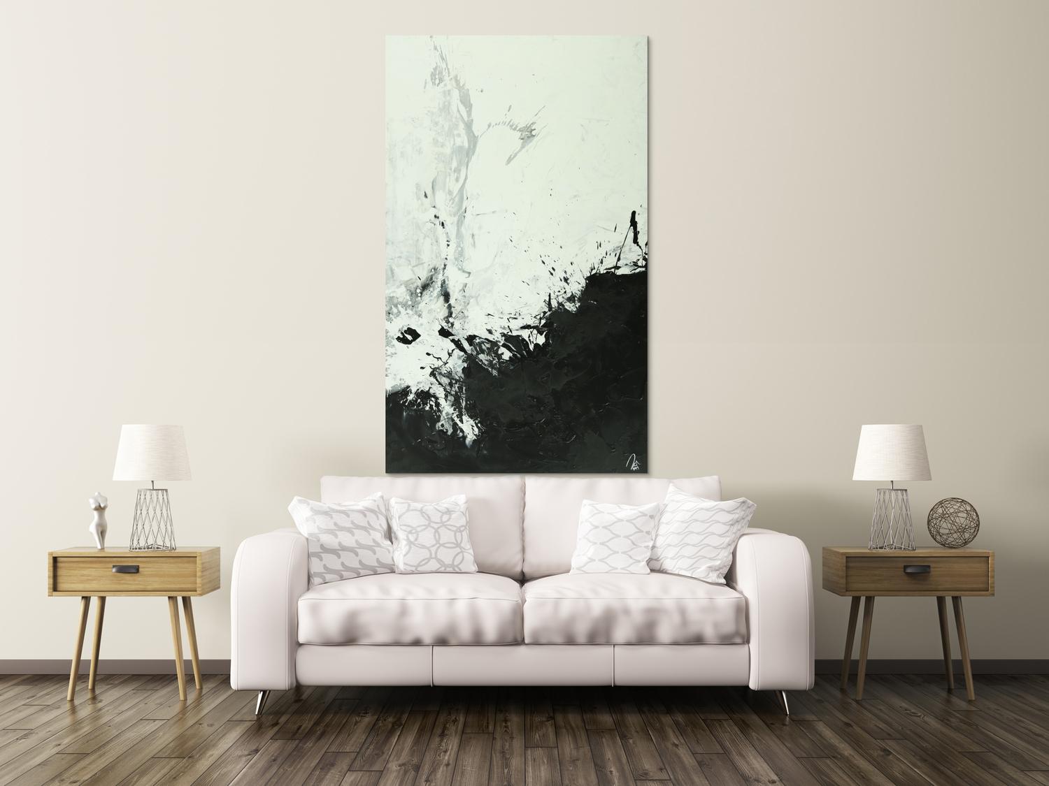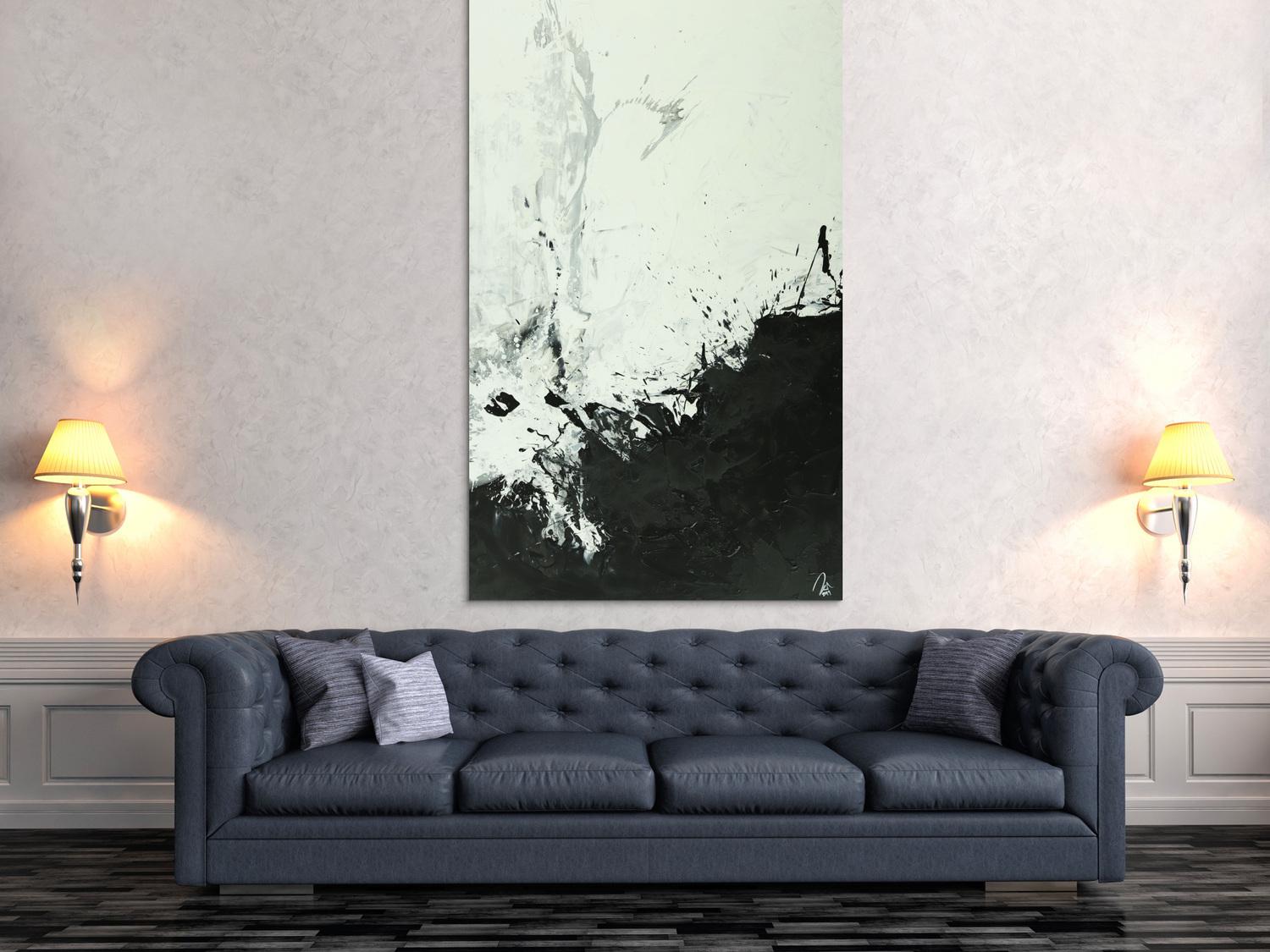 Abstraktes Gemälde auf Leinwand Abstraktes Gemälde minimalistisch schwarz weiß Mondern Art auf Leinwand handgemalt Hochformat in 170x100cm von Alex Zerr
