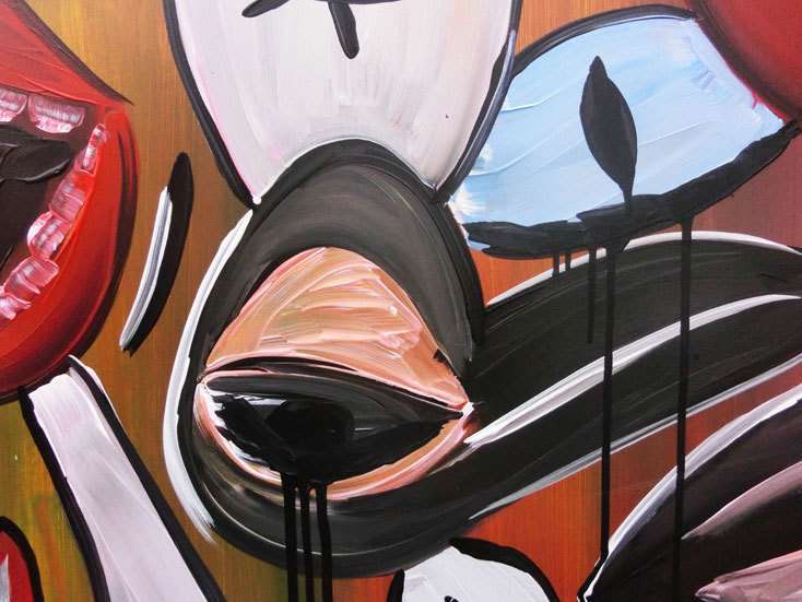 Dieses abstrakte Acrylbild ist ein handgemaltes Original vom Künstler Alex Zerr aus Bad Lisppringe und ist im Jahr 2014 in seinem Atelier entstanden. Das Bild hat eine Größe von 100x200cm und ist bereits auf einem hochwertigen und stabilem Rahmen aufgespannt. Dadurch kann das Bild nach der Lieferung direkt an die Wand gehängt werden und sofort in Ihrem Raum wirken. Alle Seiten des Gemäldes sind passend zum Motiv bemalt, so dass kein zusätzlicher Rahmen benötigt wird.