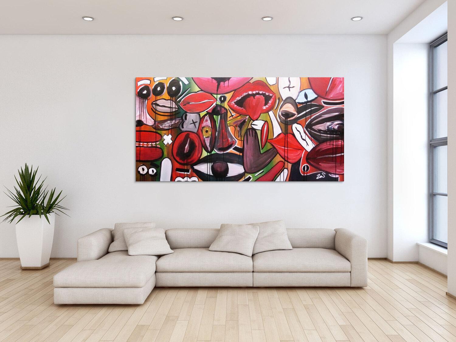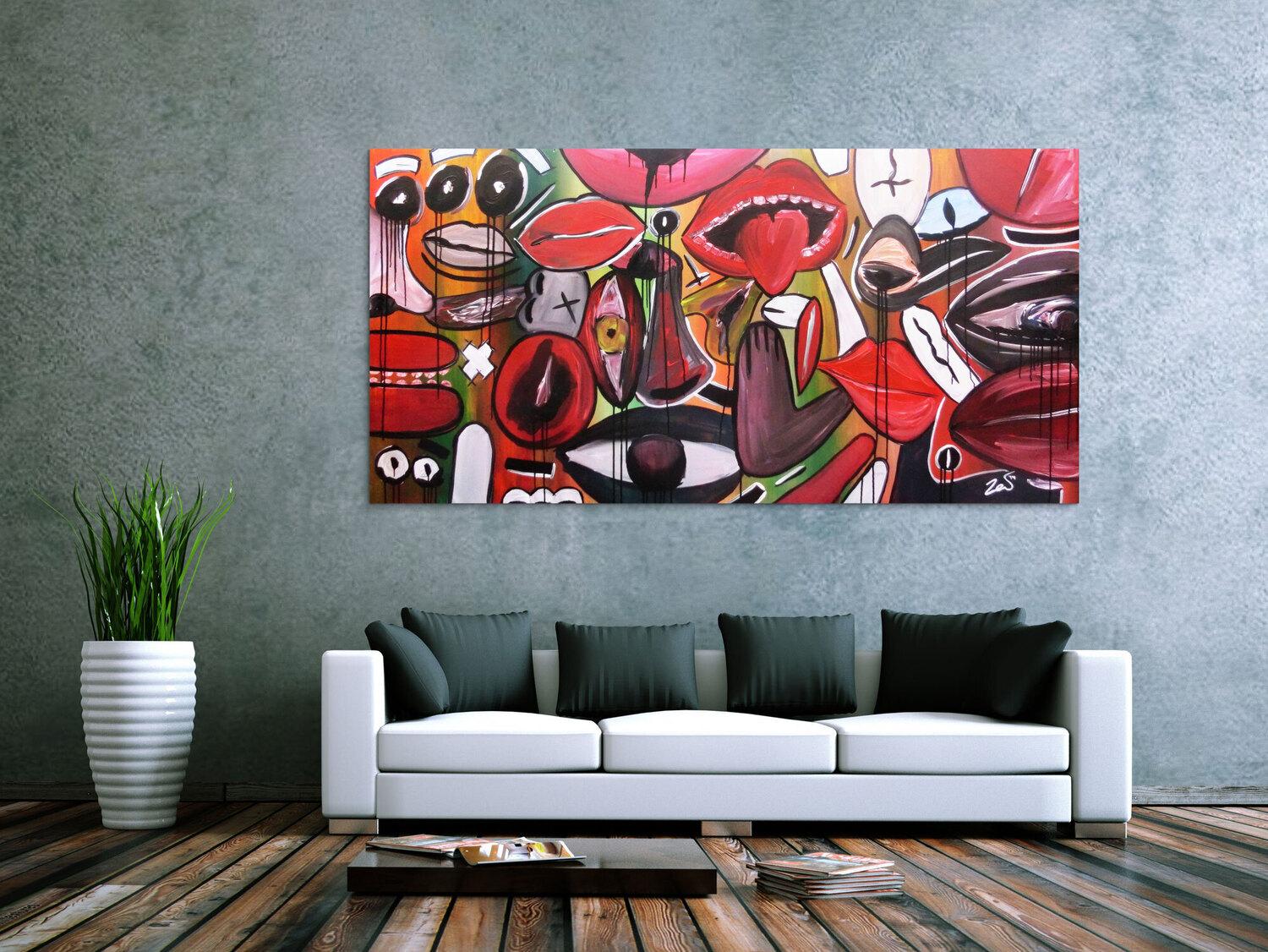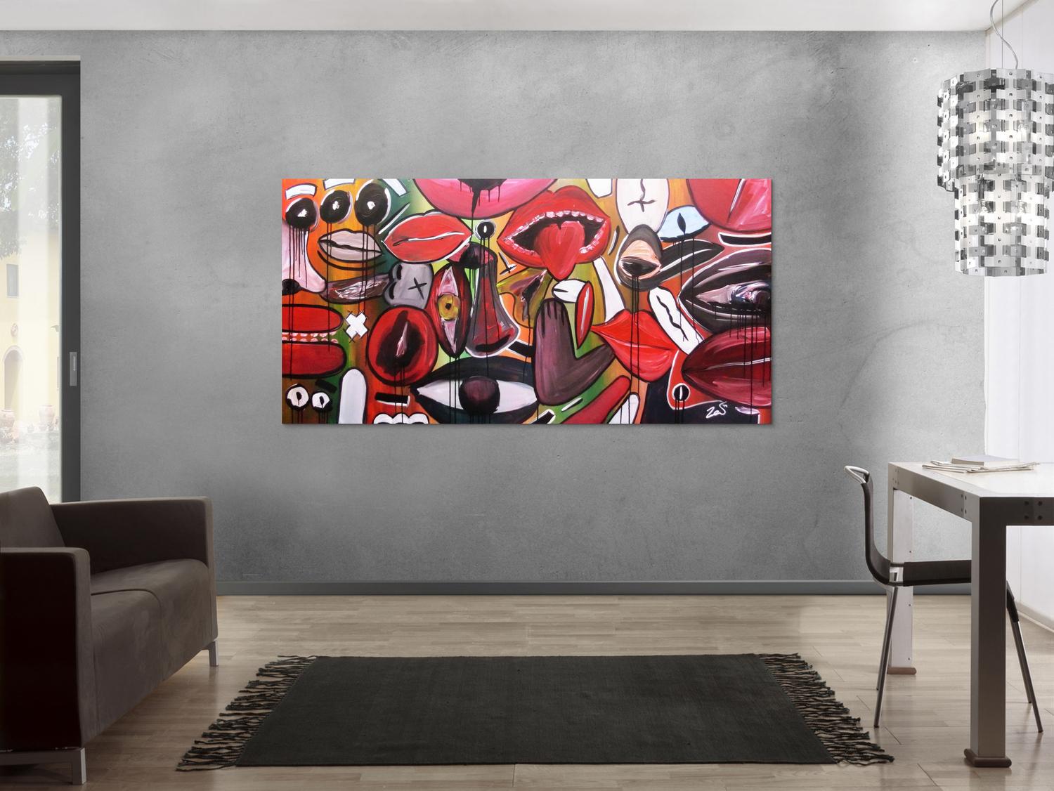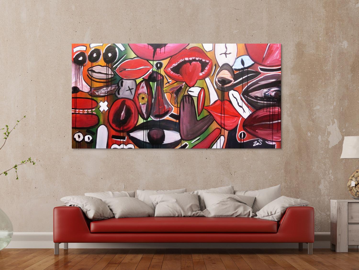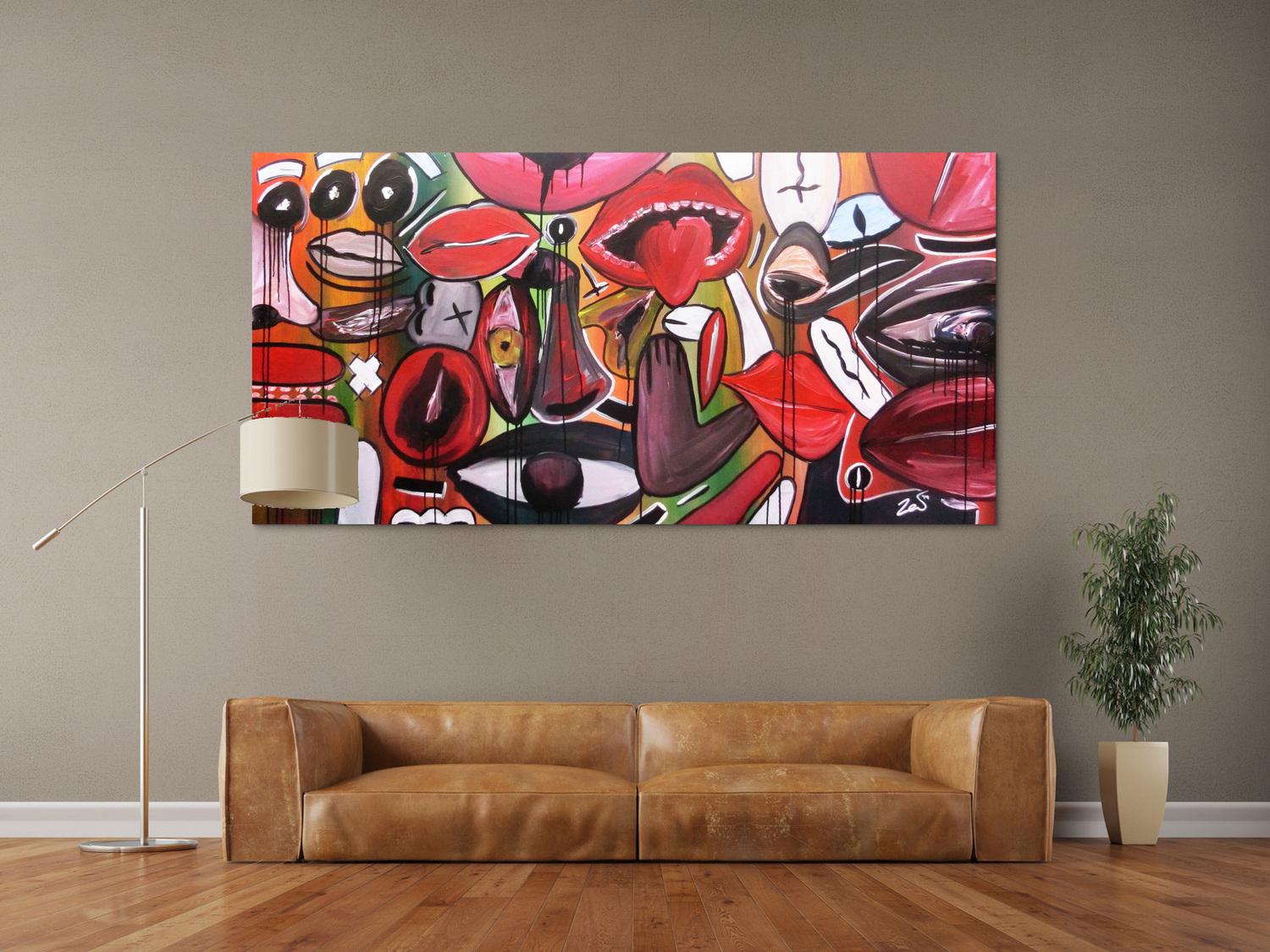Abstraktes Gemälde auf Leinwand Abstraktes Gemälde modern Gesichter und Augen in 100x200cm von Alex Zerr