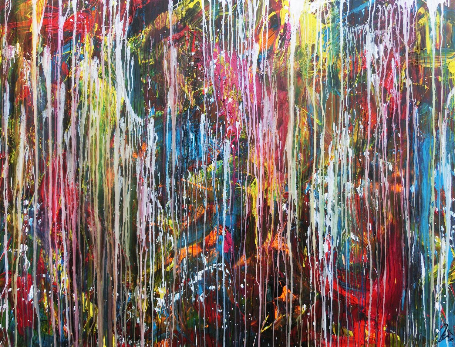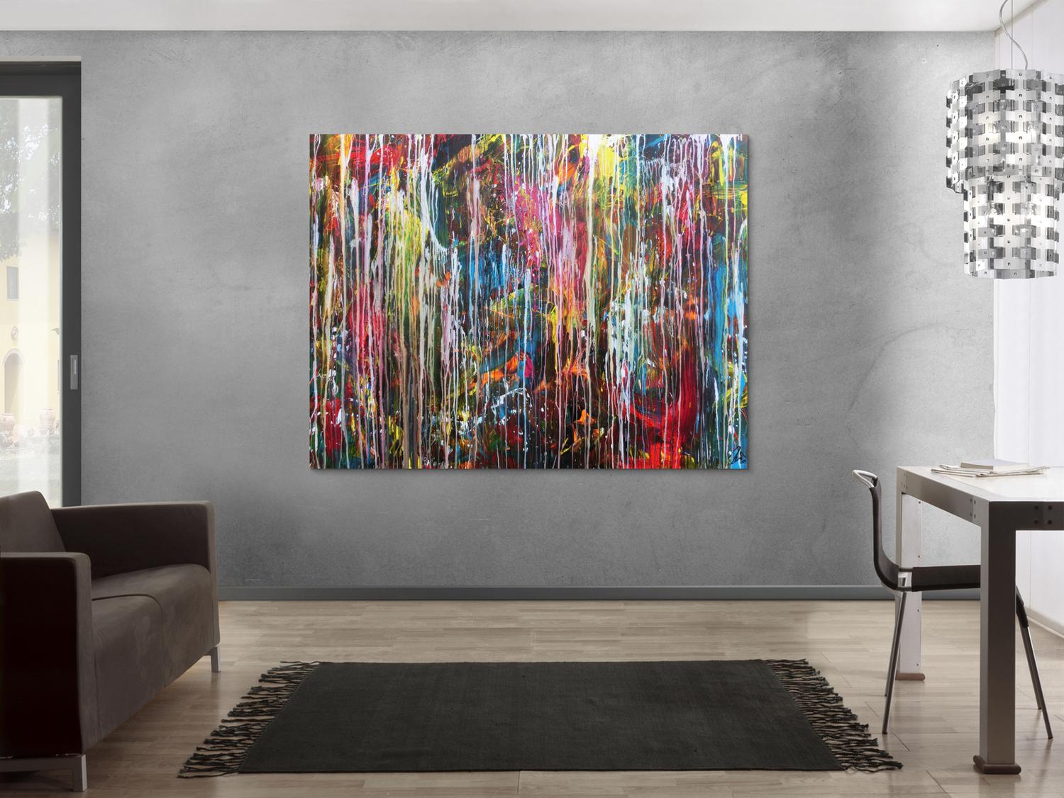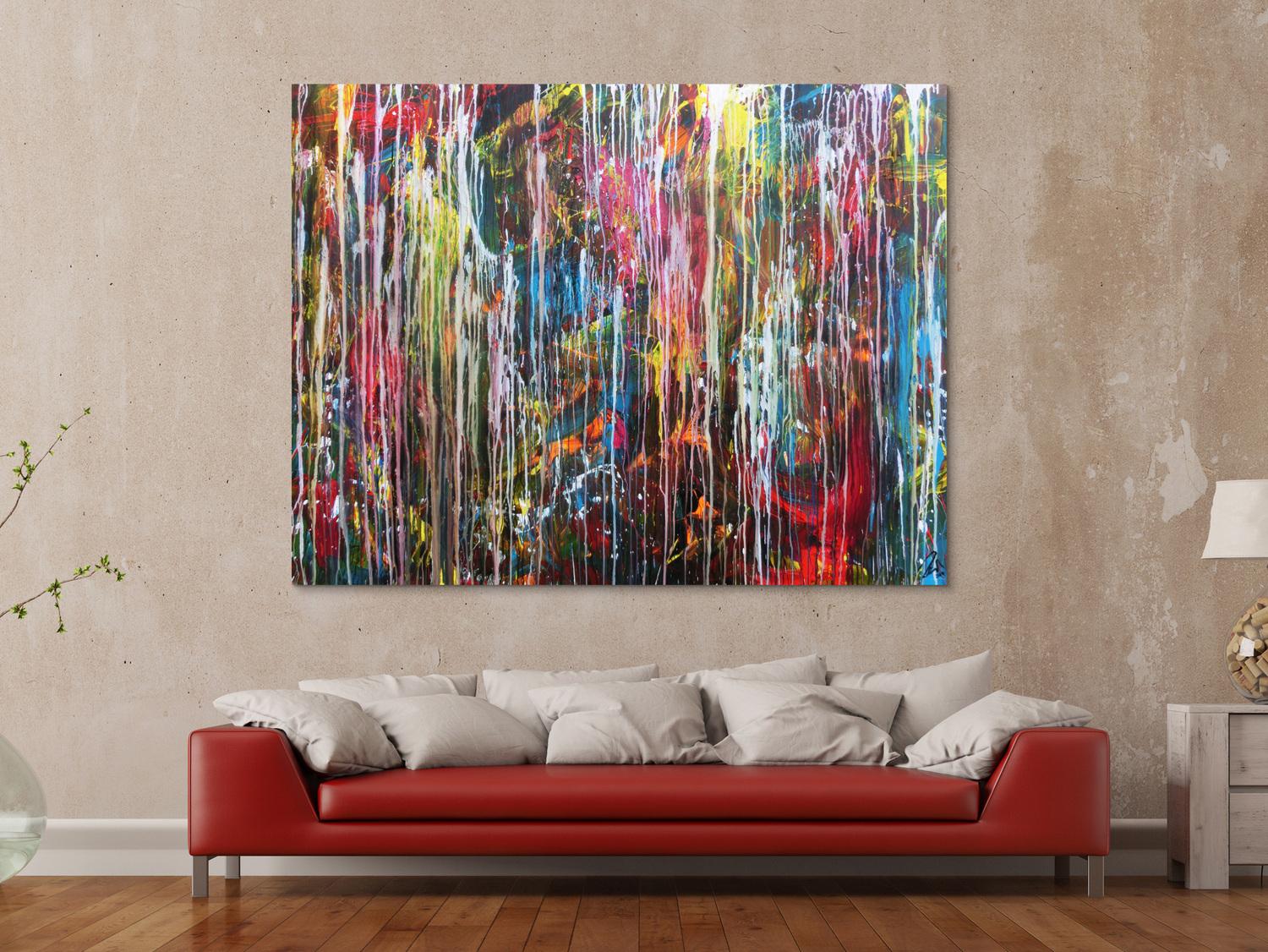 Abstraktes Gemälde auf Leinwand Abstraktes Gemälde modern Großormat sehr bunt Mischtechnik zeitgenössich in 140x180cm von Alex Zerr