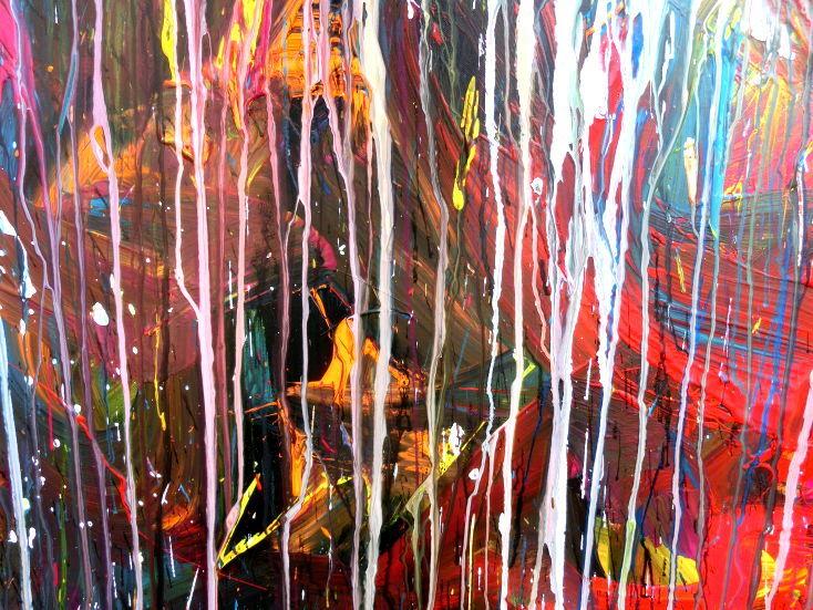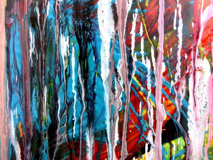 Dieses Werk ist wie alle meine Bilder: spontan entstanden, ganz intuitiv und ohne festes Konzept, und spiegelt oft meine momentane Stimmung wider wie auf der Leinwand festgehalten wurde.