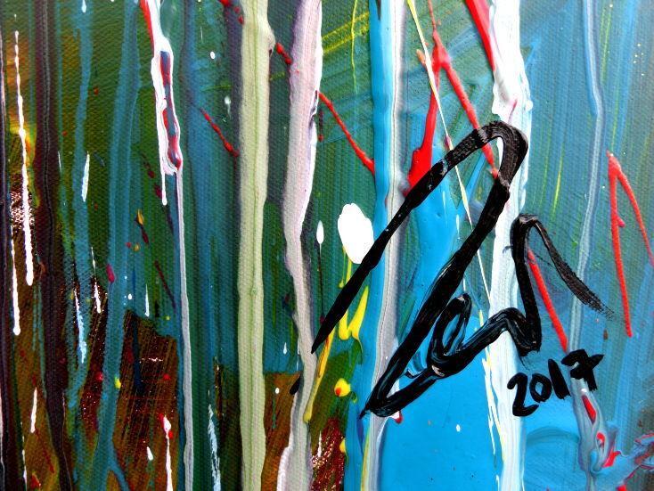 Dieses abstrakte Acrylbild ist ein handgemaltes Original vom Künstler Alex Zerr aus Bad Lisppringe und ist im Jahr 2017 in seinem Atelier entstanden. Das Bild hat eine Größe von 140x180cm und ist bereits auf einem hochwertigen und stabilem Rahmen aufgespannt. Dadurch kann das Bild nach der Lieferung direkt an die Wand gehängt werden und sofort in Ihrem Raum wirken. Alle Seiten des Gemäldes sind passend zum Motiv bemalt, so dass kein zusätzlicher Rahmen benötigt wird.