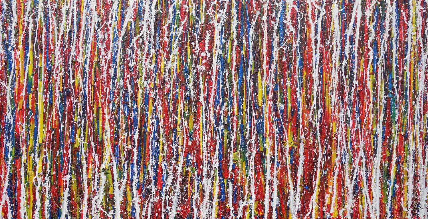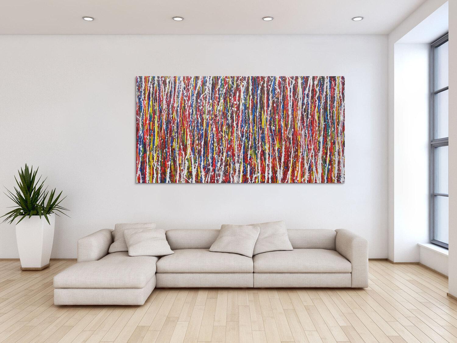 Abstraktes Gemälde auf Leinwand Abstraktes Gemälde modernes Acrylbild bunt Action Painting Modern Art in 100x200cm von Alex Zerr