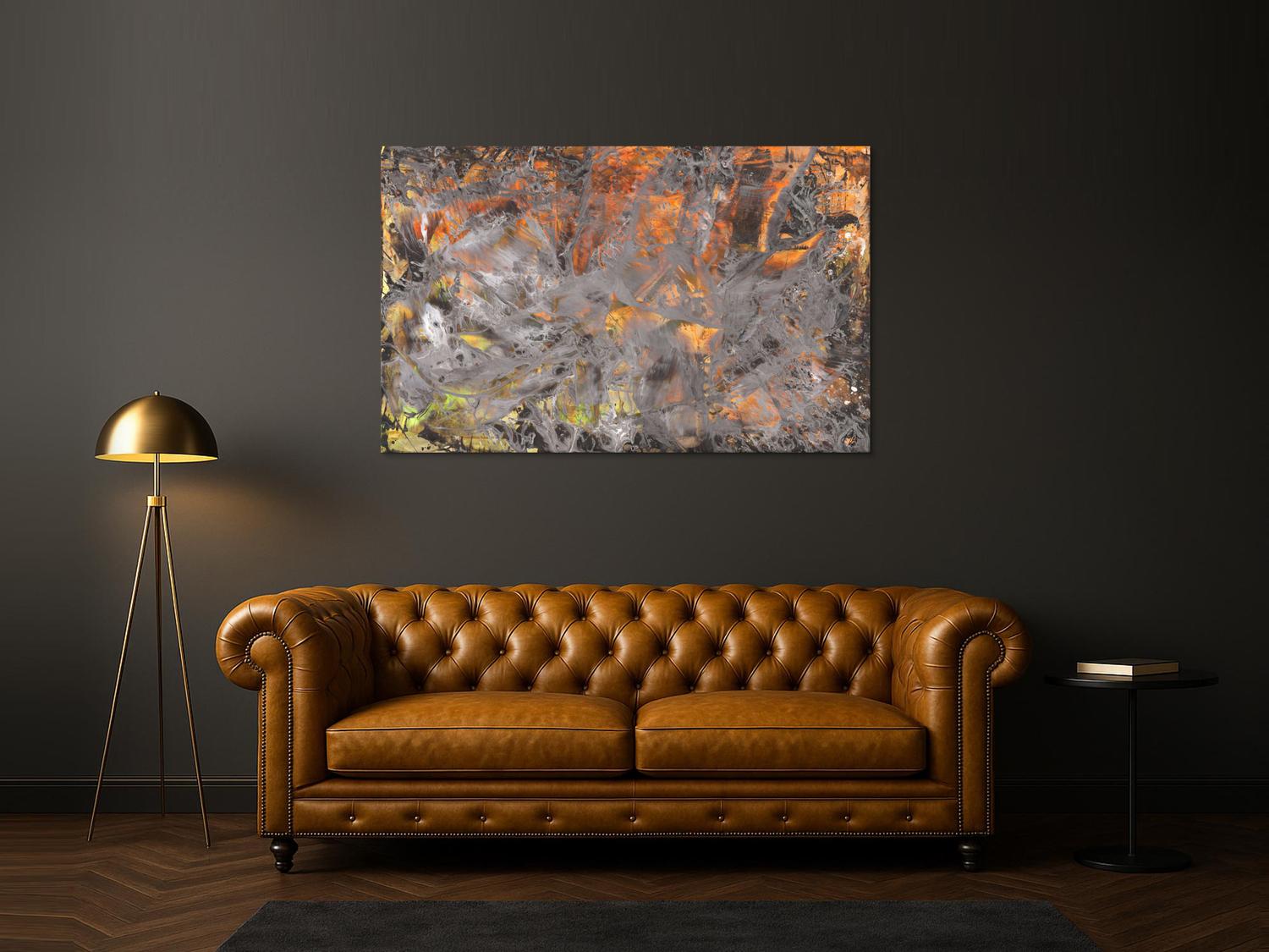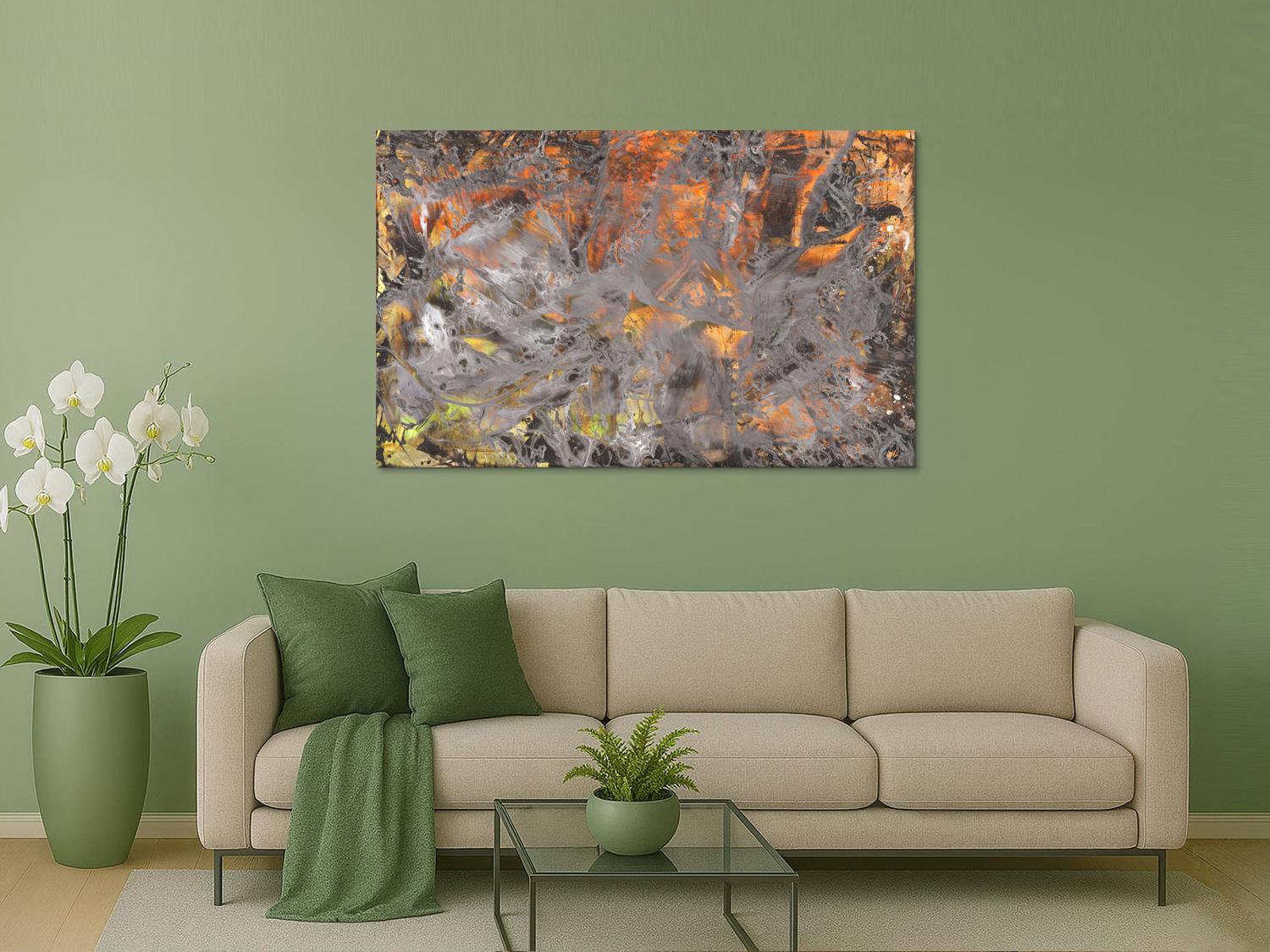 Abstraktes Gemälde neon orange grün grau Modern Art handgemalt expressionistisch